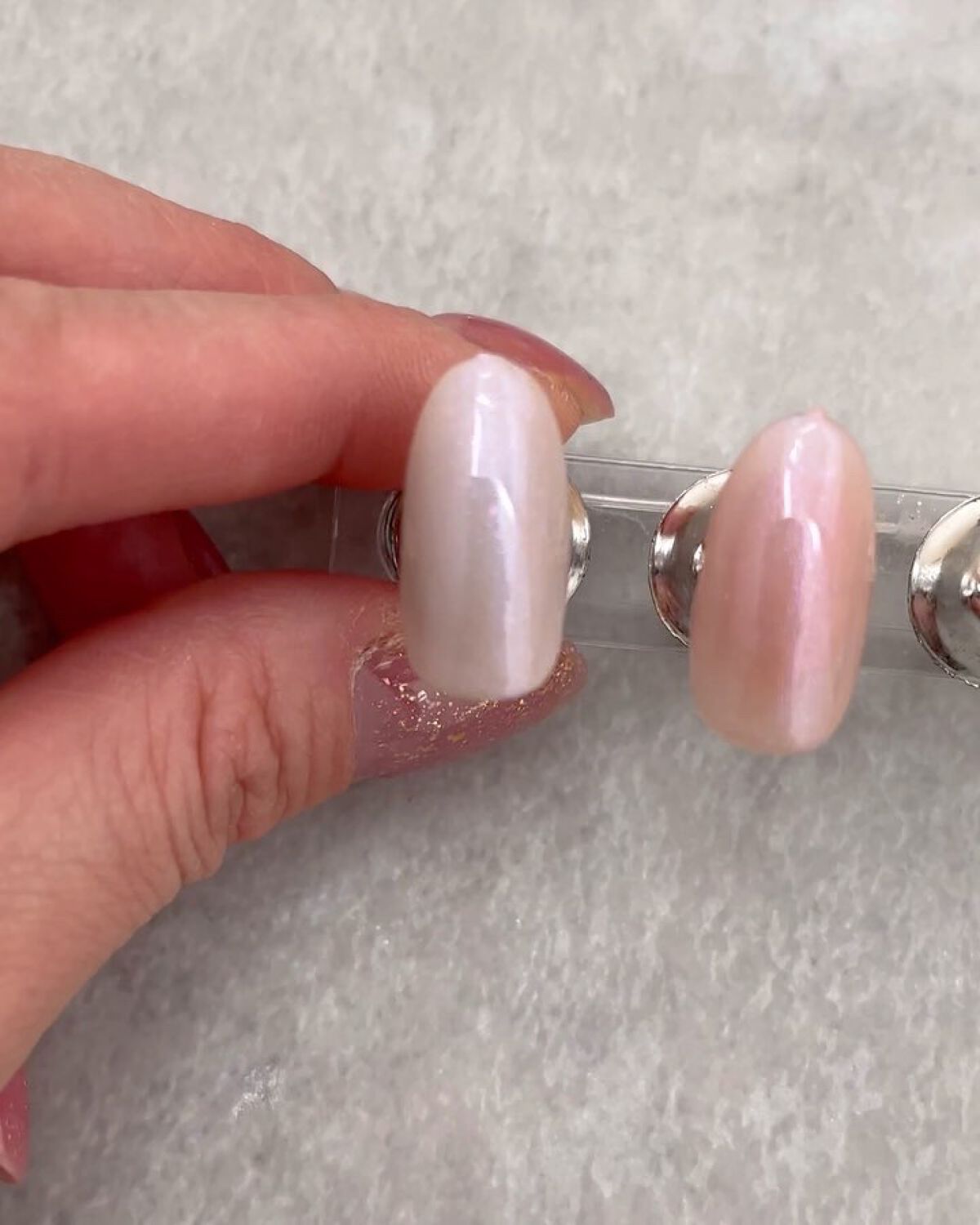 \これは買い♡ダイソーTGCコラボジェル"パウダーミスト"で簡単アレンジ/パウダーミストが可愛すぎてお気に入り♡他のカラーに重ねるだけで夢かわっぽくなっちゃうから、楽しみ方無限大✨#プチプラネイル#ジェルネイル#セルフネイル#セルフジェルネイ...