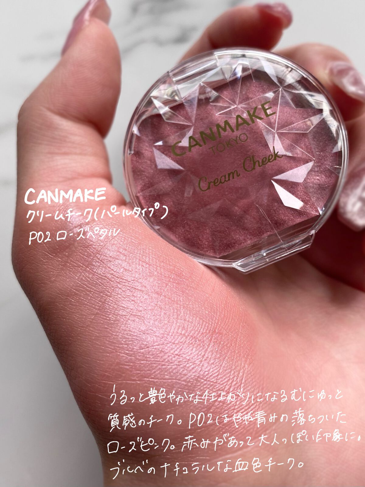 艶やかな仕上がり パール、ラメ配合 水、汗、皮脂、こすれに強い 落ち着いた大人の雰囲気に仕上がるローズピンクでむにゅっとした質感のクリームチーク💖💖 コスパ最強❤️🔥