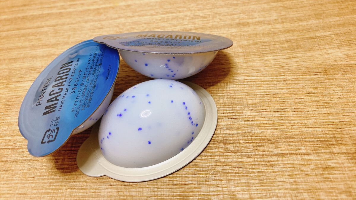 - 「パンテーン マカロン ヘアマスク」は、1粒に1回分の洗い流すトリートメントがたっぷり詰まった、使い切りタイプのヘアマスクです。 パンテーン マカロン ヘアマスク うるさらリッチ(洗い流すトリートメント)は、1箱で約1か月分のリッチな高保湿ケア体験*。乾燥しパサついた髪のための特別な処方です。 「メルティうるおいパール*2」配合で、ぷるぷる保湿成分がキューティクルに浸透し、髪にうるおいを閉じ込めます。ヒアルロン酸、プロビタミン、アミノ酸の3つの成分を配合*3した処方です。 1回分が、とろとろ浸透・熱ダメージをリペア。軽やかうるさら髪へ! いつでも開けたて、フレッシュな洗い流すトリートメントをお楽しみください。個包装だから持ち運びOK。ジムやサウナ、お泊り会、旅行・出張など、様々なシーンで使うことが出来ます。 * 週に2回使用した場合。*2 青いカプセルのこと。 *3 ヒアルロン酸Na(保湿成分)、パンテノール、パンテニルエチル(浸透性保湿成分)、ヒスチジン(コンディショニング成分)