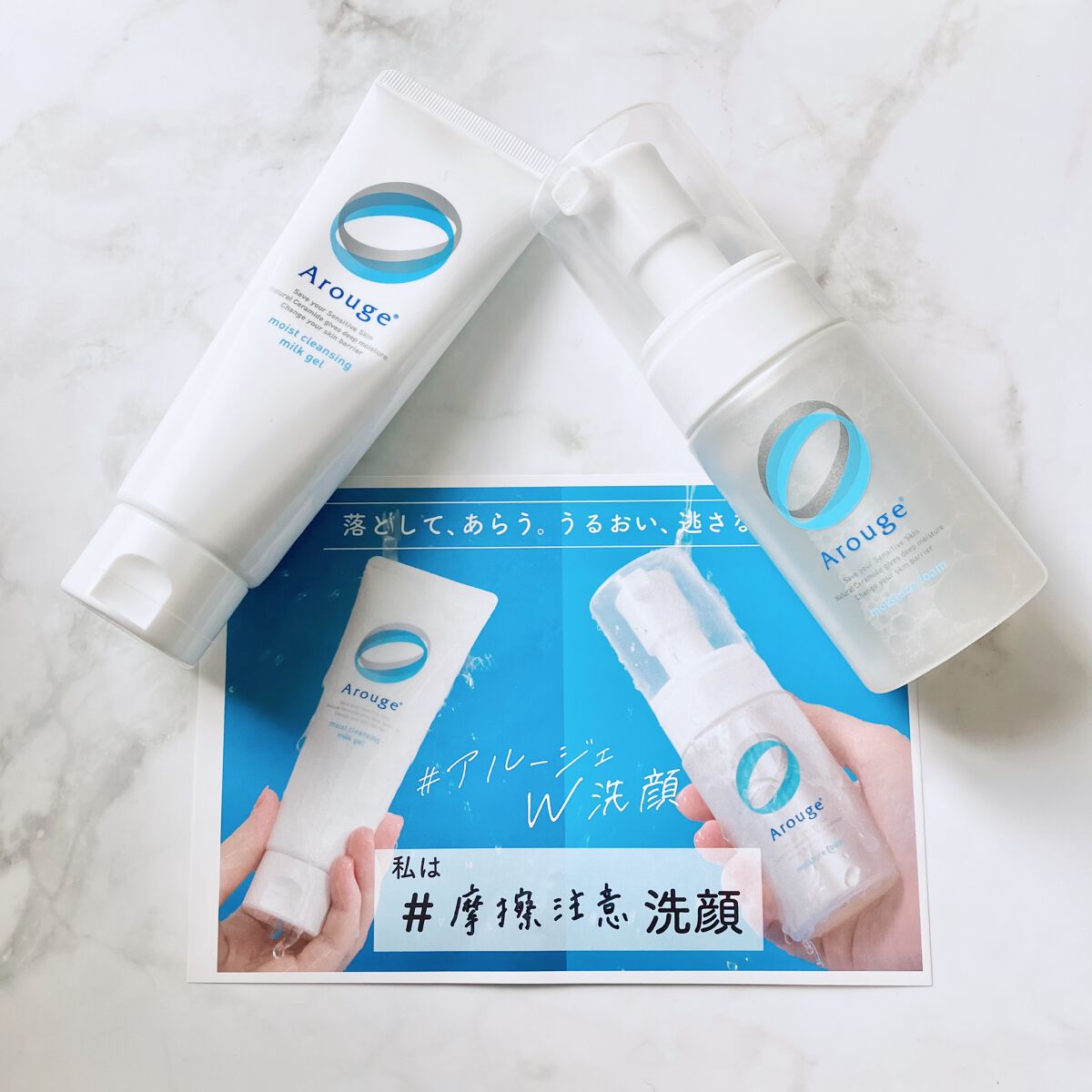 低刺激が魅力のアルージェのスキンケア! クレンジングでメイクを落としたらクリアソープorフォームでW洗顔するのがポイントです。 洗顔後の過乾燥を防ぐ厳選した洗浄成分が配合されているので洗い上がりもしっとり。 フォームはしっとりとした洗い上がりでソープはさっぱりめの洗い上がり。 自分の肌質や好みに合わせて選べます。
