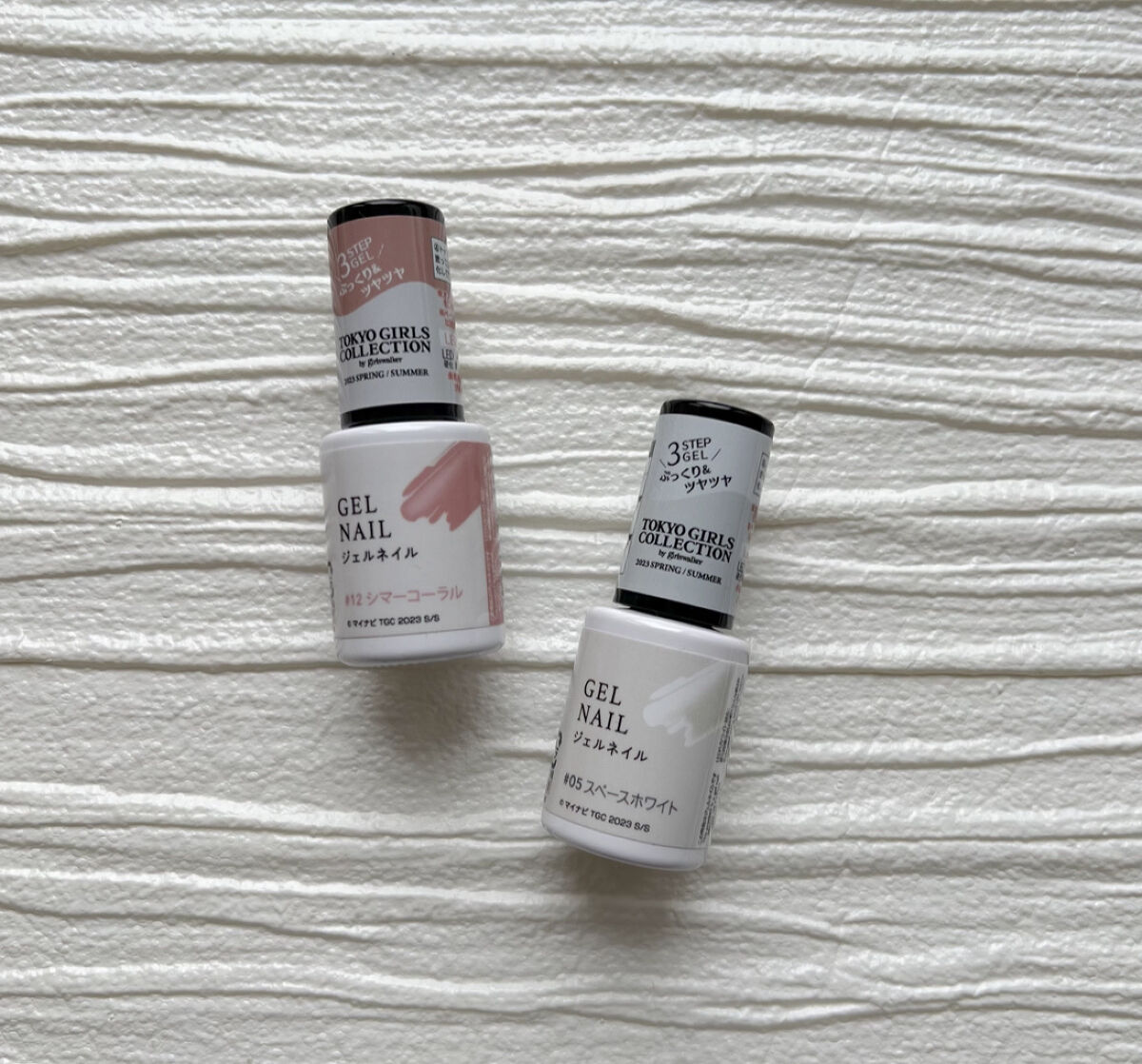 ●シマー系は1度塗りだと透明感があり、パールと合わさって綺麗でした✨爽やかな印象で4色とも夏ネイルに使える感じでした🌻 ●左側のスペースホワイトはシマー系よりさらにキラキラ感が強くてカメラで撮るとシルバーっぽく発色します🤍 ●東京ガールズコレクションとダイソーのコラボカラーだそうです🌸