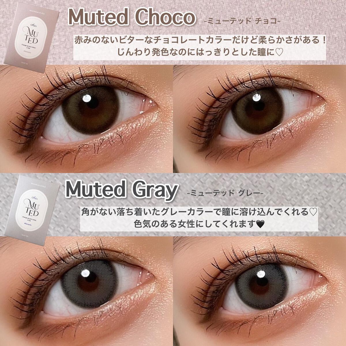 MOLAK #ダズルグレーTOPARDS #グレークォーツ MOLAKはフチしっかりめで比較するとグレーの色味がはっきりしてるかなといった印象で韓国っぽさが出ます🇰🇷🤍 TOPARDSはサイズ感が少し大きい分ふんわり優しい印象でイエベさんでも使いやすいと思います🫡💛 MOLAK #ダズルベージュTOPARDS #パールキャッツアイ MOLAKはグレー同様気持ちフチが濃いめでしっかりしてるのでキリッとした感じに仕上がります!! でもグレーの時とは違って発色はTOPARDSのがしっかり出たかなと思います! ホント比べると!ですがMOLAKの方が馴染みやすいベージュかなと。