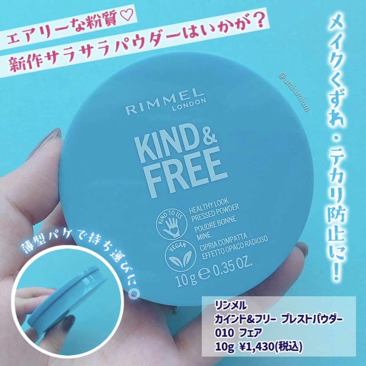 リンメルのカインド&フリープレストパウダーはとにかくパケがびっくり!薄いの!ポーチにお直しファンデ入れたいのに入らないって、ありません…?そういう人にはこれおすすめです!ただ薄さを重視するあまりかパフに手を入れるリボンの支えみたいのが無い、パ...