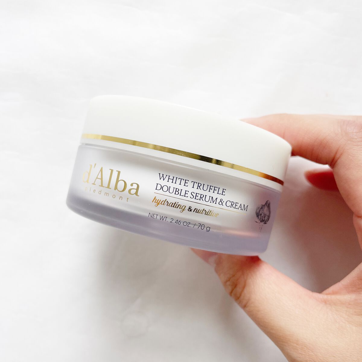 ホワイトトリュフダブルセラムアンドクリーム 使ってみました💕 保湿ケアできるアクアセラムと弾力ケアできるインテンスクリームの2つのクリームを合わせて使います ★アクアセラム:ヒアルロン酸、パンテノール、ツボクサエキス配合。肌に水分を与え肌のキメを整えます。 ★インテンスクリーム:イタリア産ホワイトトリュフ配合。肌にうるおいを与えツヤのあるもち肌へ。