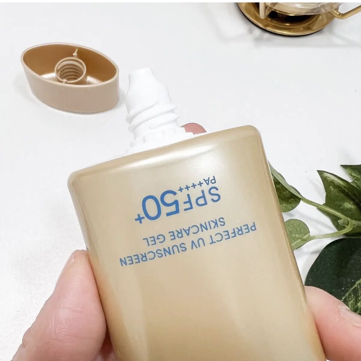 - SPF50+ ・ PA++++ 顔・ から だ用 汗、水、そして空気中の水分※10 に反応してUVブロック膜が強くなる技術搭載 毎日つけたくなる みずみずしいスキンケア UVジェル ※10 暑い時期の高湿度環境 〇汗、水、そして空気中の水分に自動的に反応して 、 UVブロック膜が 強くなります 。-オートブースタ ー 技術 〇透明美肌仕上げ-ビューティ ー アップ 〇スキンケア成分50%配合 〇保湿成分:コラーゲン、スーパーヒアルロン酸※9、グリセリン ※9 アセチルヒアルロン酸Na 〇長時間保湿持続効果 〇スーパーウォータープルーフ 〇マスク蒸れ対応 〇耐こすれ 〇化粧下地効果 〇せっけんで落とせる 〇みずみずしいジェル 〇生まれ変わった、心地よいフルーティーフローラルの香り 〇大気中に浮遊する微粒子、PM2.5などから肌を保護します。 -微粒子付着防止対応 〇海に流れ出にくいオーシャンフレンドリー処方※6 ※6 自社品内の耐水処方でない商品と比較 〇植物由来の原料を一部使用した袋 〇無着色・ノンコメドジェニックテスト・アレルギーテスト済み (全ての方にニキビができない、アレルギーが起きないというわけではありません)