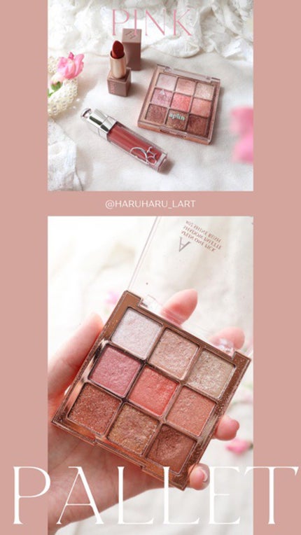 全色ラメ入り! APLIN ワンピックアイシャドウパレット 02 シャインラッシュ とってもかわいくて虜になっちゃう最強ラメパレット! サラッとしている細かいラメからザクザクで密着力がかなり高めのラメまでたくさん! 個人的お気に入りカラーは左上のシルバーと真ん中のピンクラメ! 1度ぜひ使って欲しい!!