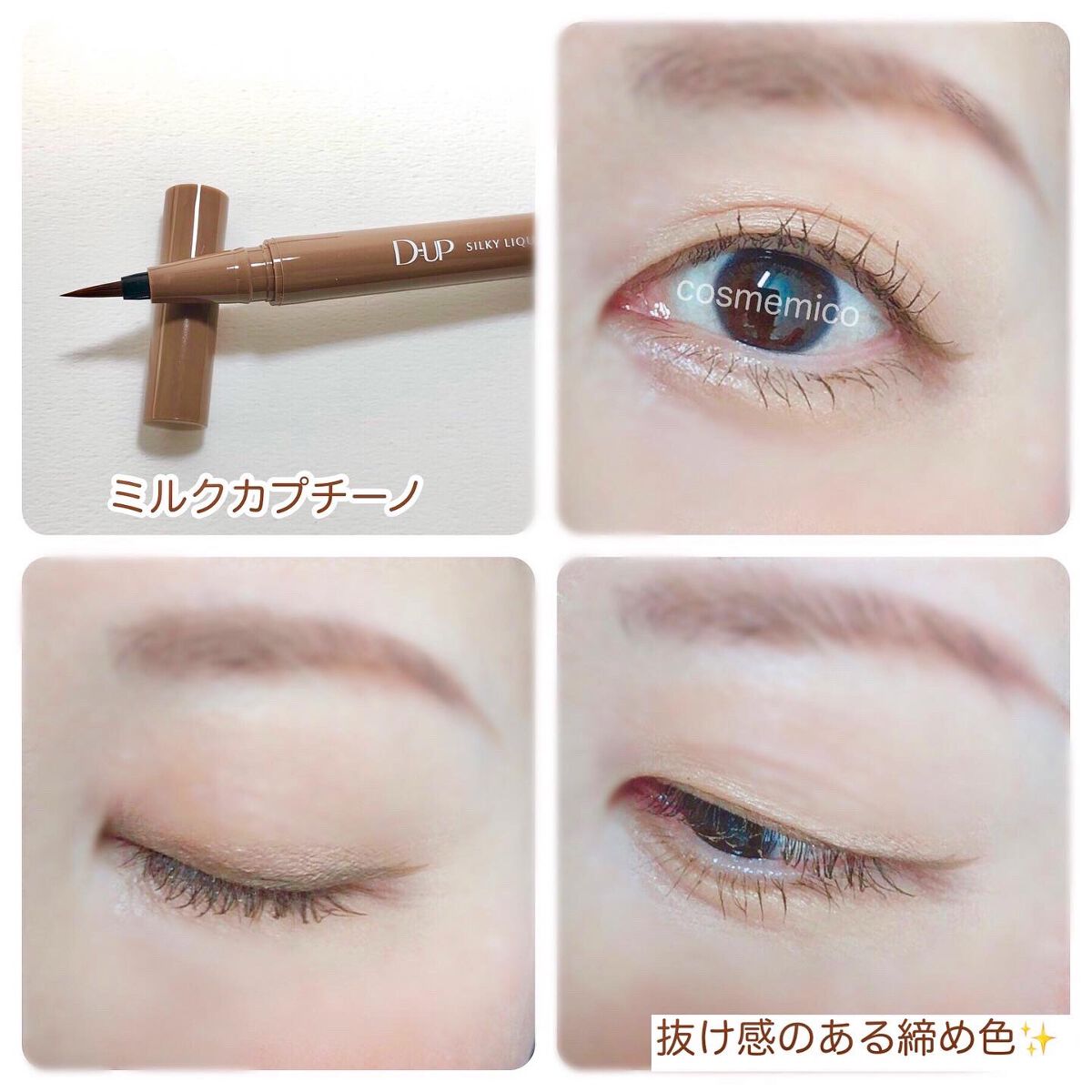 パーフェクトエクステンションマスカラ for カール マスカラ新色 『モカベージュ』 小さめブラシで小回り◎+カールブラシが目のカーブにフィットして塗りやすい🥰 シルキーリキッドアイライナー アイライナー新色 『ミルクカプチーノ』 目尻までかすれず滑らかに理想のラインが描けて、長時間キープ😘 王道ブラウンよりも、柔らかな存在感 やわらかい雰囲気を作りたいときはこれ😍
