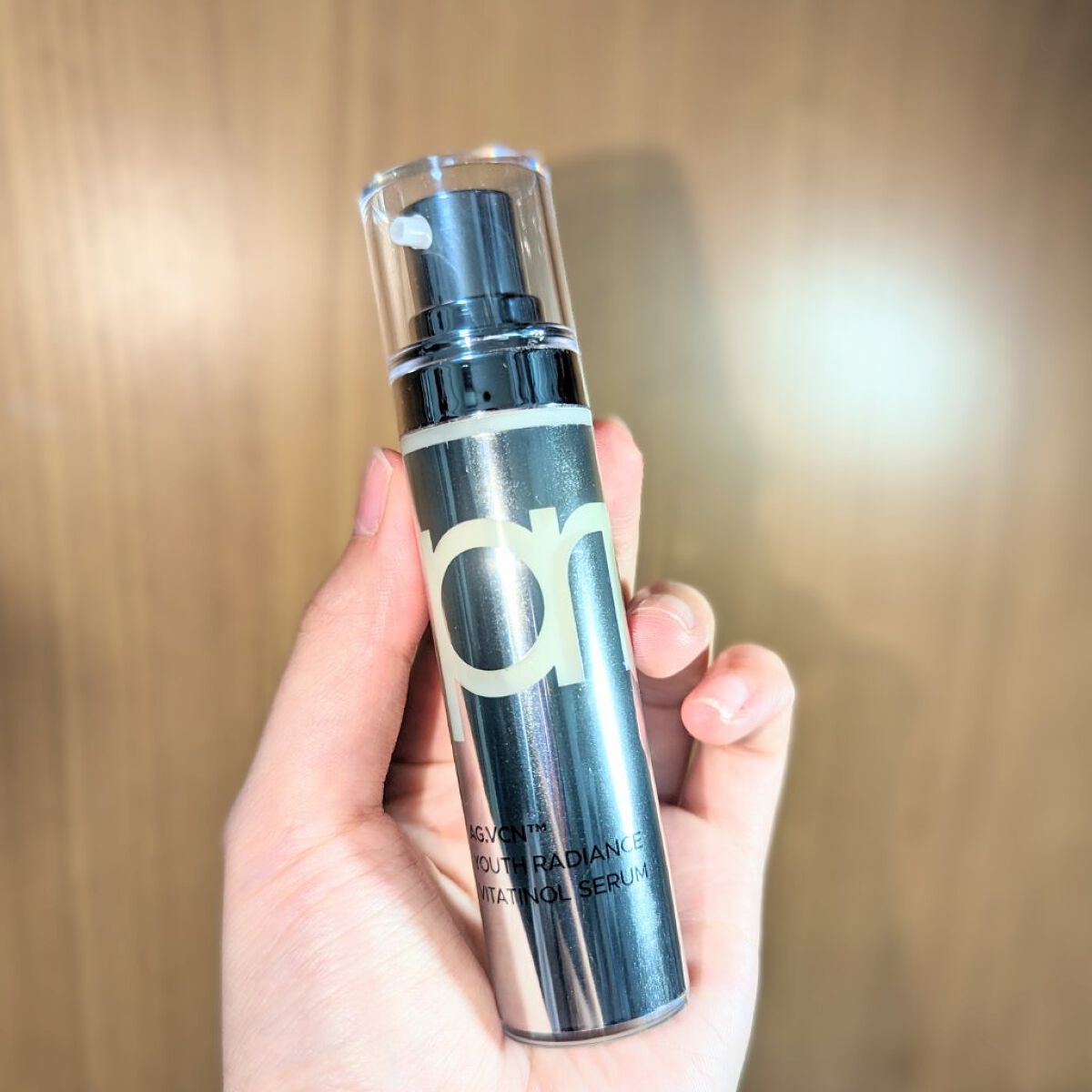 ビタミンCとレチノールが配合された美容液✨️ 乳液のようなテクスチャーでベタつかず滑らかな使い心地でした! ピリついたりもしなかったので朝晩つかってみます☺️ サイズも大きすぎず使い切りやすいサイズでいいなと思いました💕