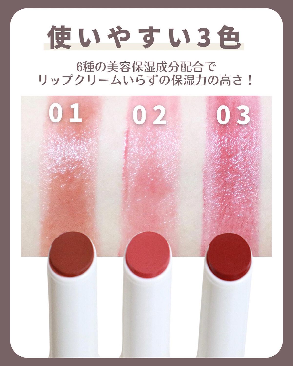 - とろけて潤うむっちりぷるぷる唇に! その名の通り、むっちりとしたボリューム感とぷるぷるツヤツヤな魅力的な唇に仕上がるティントリップです。 Point1【むっちりぷるぷる唇】 ・プランパー効果で縦じわカバー&ボリューム感のあるむっちり唇に ※メイクアップ効果による ・スーッとした清涼感のある使い心地 Point2【ちゅるんとしたツヤティント】 ・シロップのようなちゅるんとしたツヤが持続 ・塗った時の色が長持ちするティント処方 唇の上でとろけるメルティングオイルを配合しています。 するすると抵抗感がなく、なめらかな塗り心地で、重ね塗りをしてもムラなくきれいに仕上がります。 6種の美容保湿成分配合。リップクリームいらずで潤いが持続します。 ≪ワセリン・ヒアルロン酸・コラーゲン・アルガンオイル・ハチミツ・シアバター≫ 無香料 ・清涼感のある使い心地です。 ・大変やわらかい中身ですので、1㎜程度くり出して、ゆっくりやさしく塗布してください。 ・一度繰り出した中身は戻りませんので、出し過ぎにご注意ください。