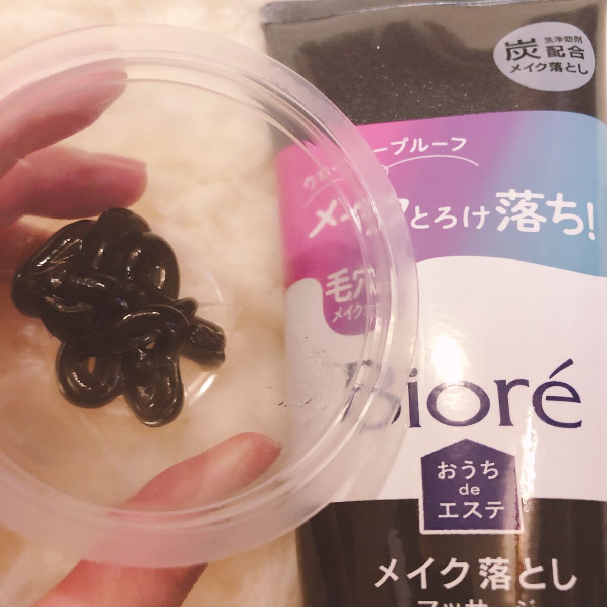 - 毛穴ケアに人気のおうちdeエステからメイク落としが発売! 炭(洗浄助剤)配合ディープクレンジング処方のブラックジェルで毛穴に入り込んだメイク汚れまでしっかり溶かし落とす! つっぱりにくく、しっとりつるりとした洗いあがり。 毎日のクレンジングがエステに変わる! ◆ウォータープルーフマスカラまで落とせます。 ◆摩擦低減*設計で肌なじみのいいやわらかいジェルタイプ ◆手や顔がぬれていても使えます。 ◆毛穴が開きやすいお風呂場での使用がおすすめです。 ◆すすぎ後の洗顔はいりません。 ◆気分リラックス フレッシュフローラルの香り *ビオレしっかりクリアジェルとの比較