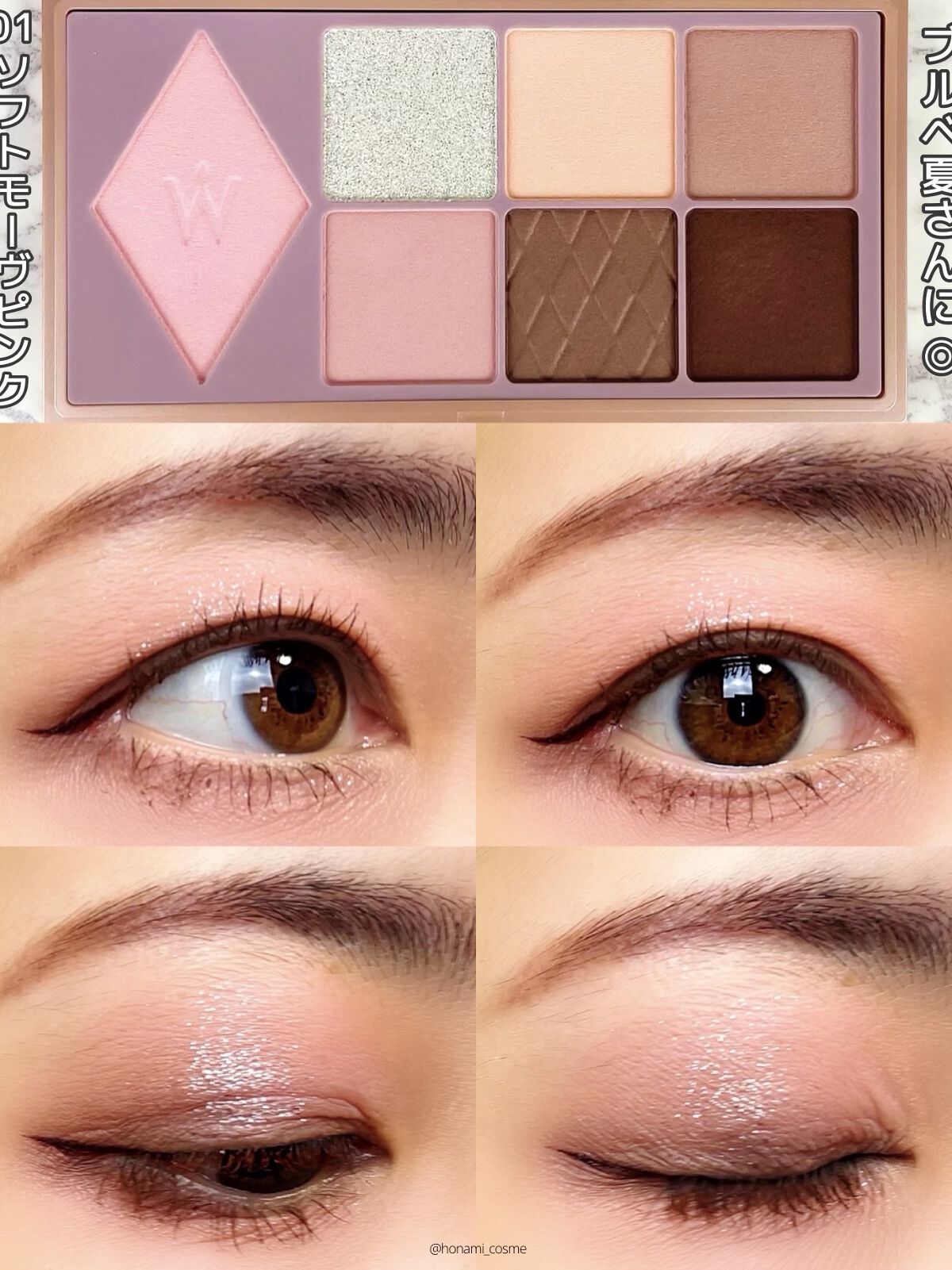 \絶対✨可愛くなりたい日のメイク♡/💎WonjungyoウォンジョンヨWデイリームードアップパレットカラー:01ソフトモーブピンク:03ブロッサムコーラル:04クライローズ各¥2,420・目元スウォッチ画像は、04クライローズのチーク部分を目...