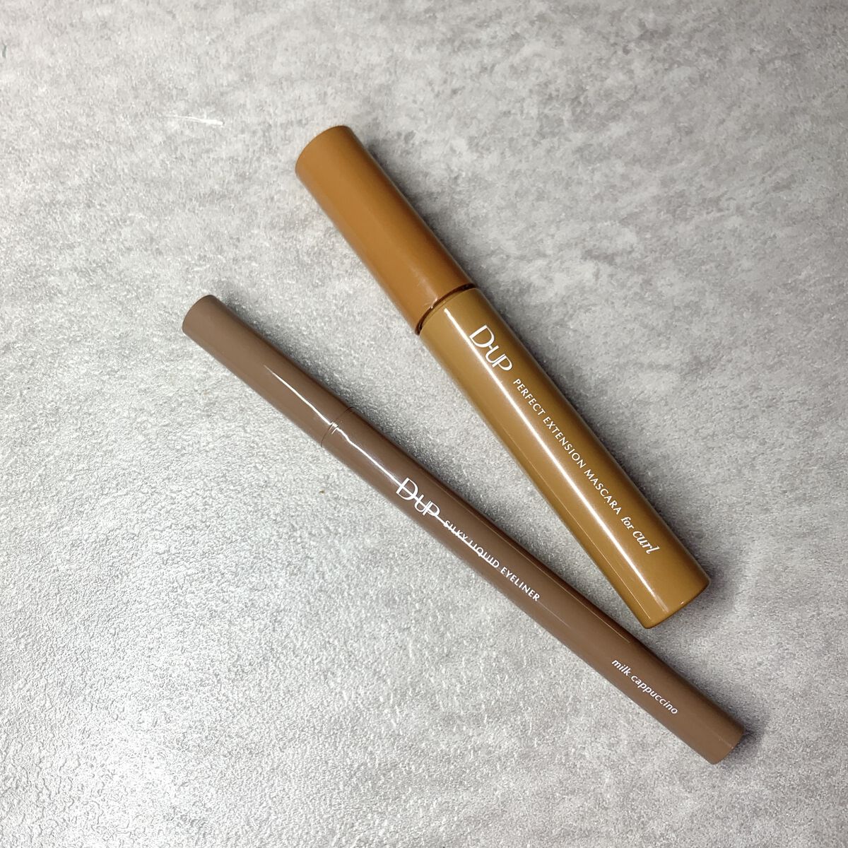 パーフェクトエクステンションマスカラ for カール マスカラ新色 『モカベージュ』 小さめブラシで小回り◎+カールブラシが目のカーブにフィットして塗りやすい🥰 シルキーリキッドアイライナー アイライナー新色 『ミルクカプチーノ』 目尻までかすれず滑らかに理想のラインが描けて、長時間キープ😘 王道ブラウンよりも、柔らかな存在感 やわらかい雰囲気を作りたいときはこれ😍