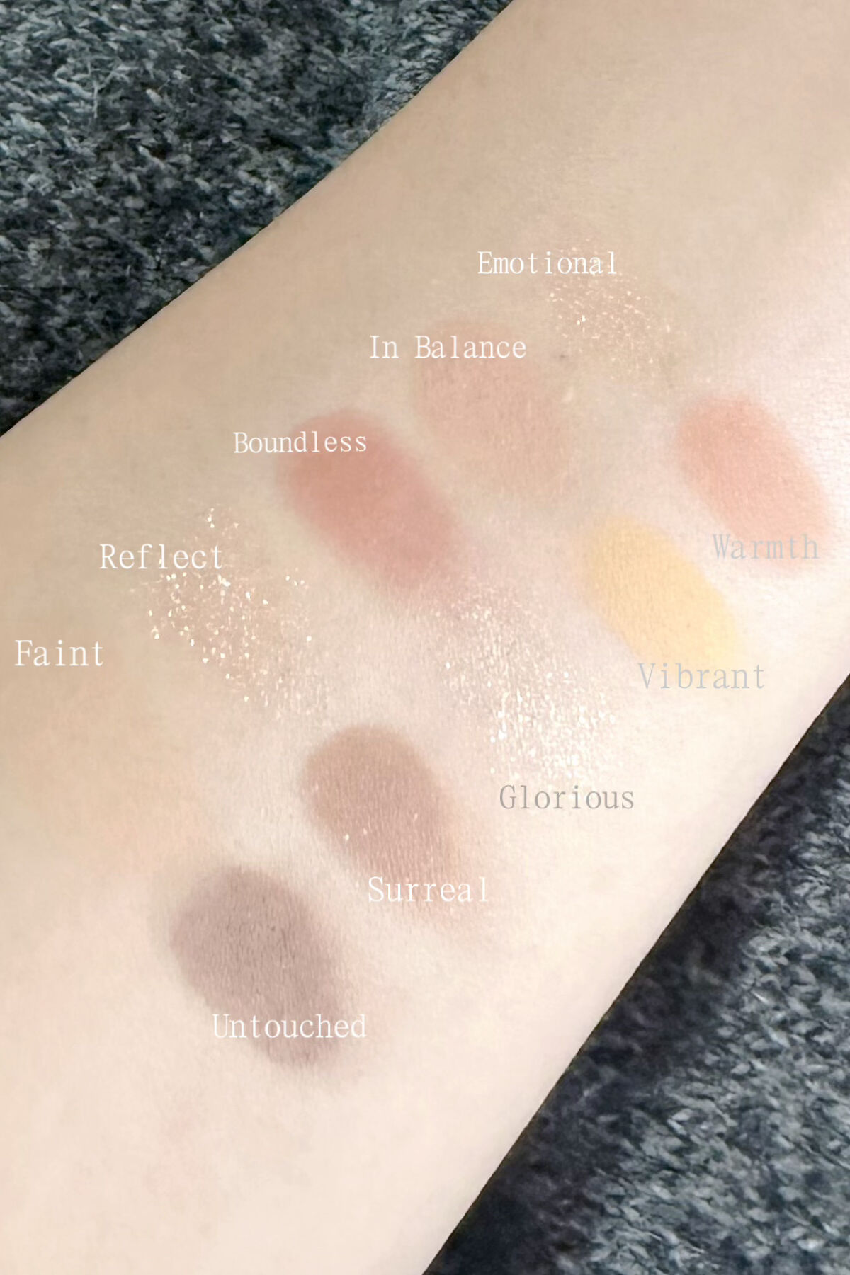 様々な色や質感を重ねて楽しむ昼夜の花見パレット🌸 夜空を反映したモーヴピンク色の花びらとほのかに反射して光る川辺のディープネイビーの輝きがそのまま投影された夜桜を嗜むように雅なアイパレット🌌 トーンの異なるマットのピンクシャドウで陰影を作ることもできるし、ブラウンだけを使ってスモーキーなメイクもできる🧸 カルミンアレルギーの私だけど、この10イン・フローはヴィーガン仕様なので安心して使えました☺︎