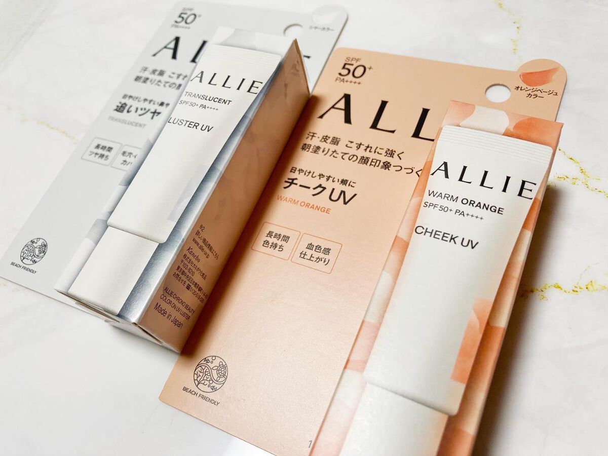 - ◆紫外線を浴びやすい、頬に使えるチークUV/鼻・頬に使える追いツヤUV ◆メイクの上から塗り直しとしても使える。 ◆汗・皮脂 マスクやタオルなどのこすれにも強く落ちにくい。 ◆「カラーUVヴェール技術」で、ベースメイクと混ざりにくく均一に密着。 SPF50+と感触の良さはそのままに素肌を活かした自然な色づきを両立! ◆8時間色持ち データ取得済み ※アリィー調べ。効果には個人差があります。 <基本情報> ・強力UV カット(SPF50+・PA++++) ・フリクションプルーフ:タオルやマスク等のこすれにも強く、落ちにくい ・スーパーウォータープルーフ:汗・水に抜群※²に強い機能 ※² アリィー商品内において LUCENT PINK(チーク 01) 自然に色づき血色感仕上がりの‟透け感ピンク” パッケージもピンクで、ポーチの中も華やぐメイクアイテムです WARM ORANGE(チーク 02) ヘルシーな血色感仕上げの‟じんわりオレンジ” じんわ~りと血色感を与えてくれるから、素肌を活かした自然な仕上がりに TRANSLUCENT(ラスター) ツヤ感を演出する‟シマーカラー” 鼻や頬にハイライトとして使うことで長時間ツヤが持続します