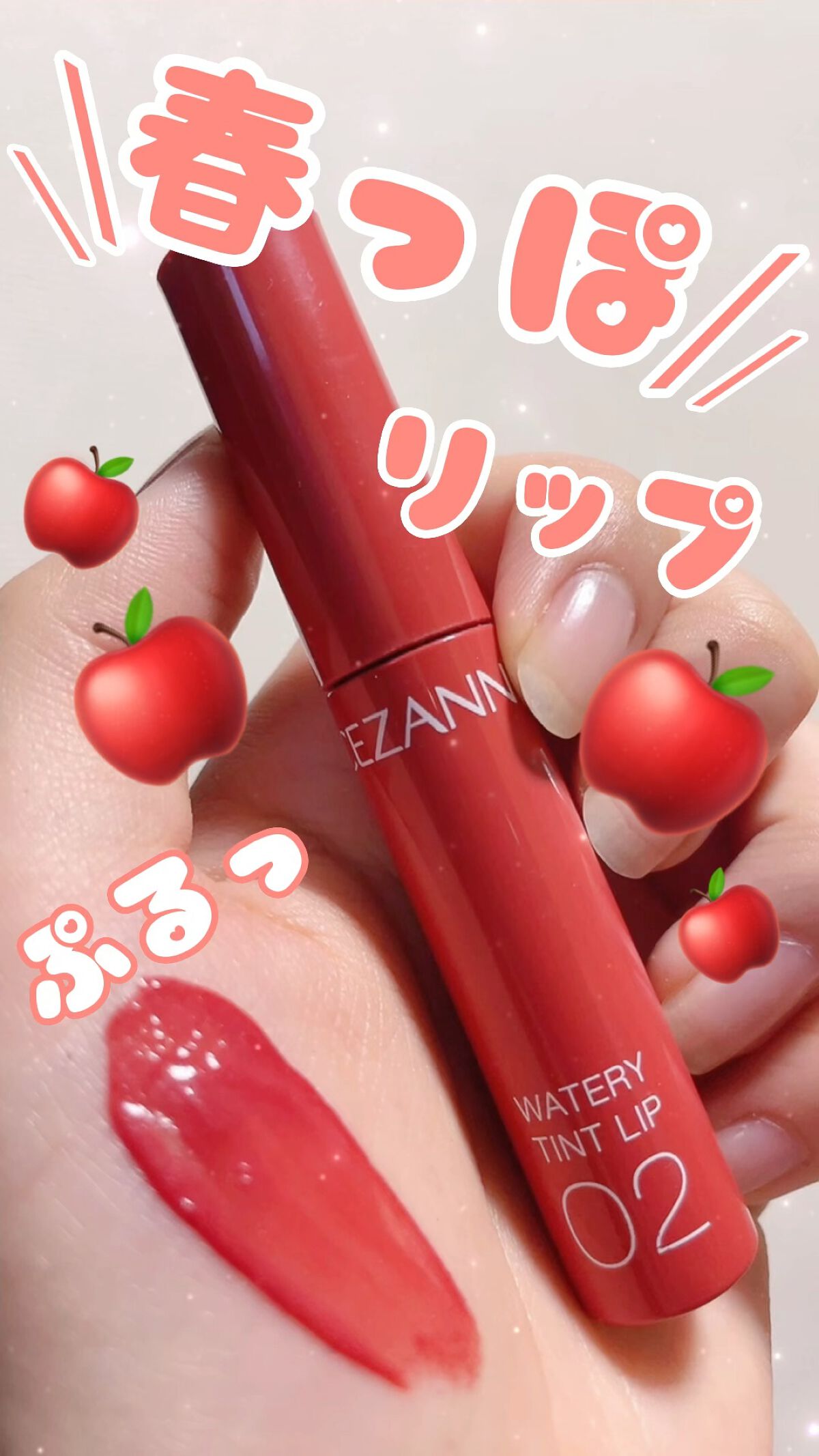 - ツヤ×色×潤いをキープする、セザンヌの新濡れツヤリップ みずみずしい濡れツヤ感ある仕上がりで、発色とツヤが長続きするティントリップです。ティントの発色を透明のベールで覆うリップコートのような処方で、ツヤ感と色をキープします。さらに、唇表面のべたつきは少なく、しっとり潤うオイルinウォーター処方を採用しています。