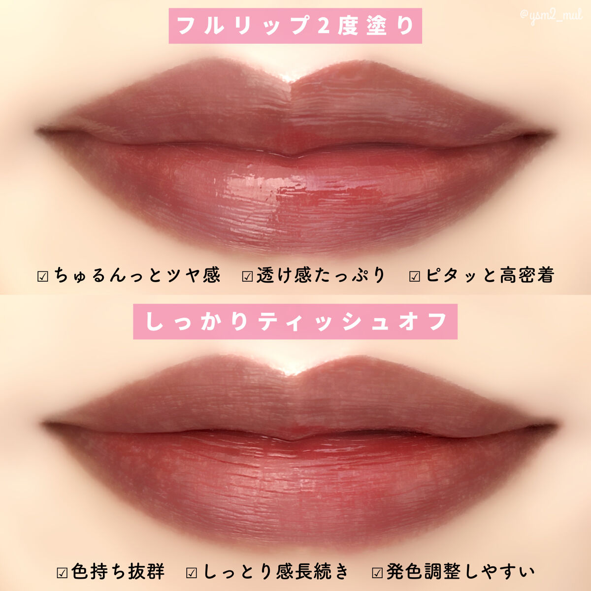 | 乾燥しにくく、艶感をキープしてくれて、ティント特有の色持ちも良く、ぷるっとしたジューシーな唇に仕上がります | 詳細を見る | |