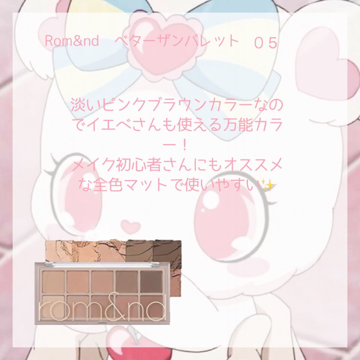 サムネめっちゃかわいい🥺 ロムアンドのアイシャドウパケ可愛いし欲しいんだけど値段が可愛くないのよ☆ ナチュラルチークお揃!💞