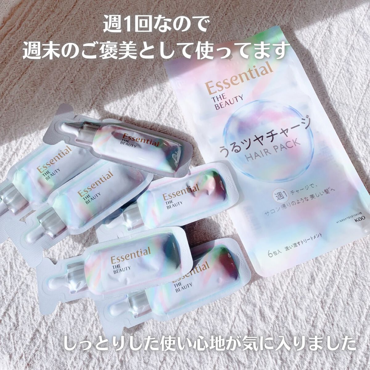 エッセンシャル🌿ザビューティうるツヤチャージヘアパックドラッグストアで買えるお手軽優秀アイテム髪に週1チャージで、サロン帰りのような美しい髪*1へ導くトリートメント。ハイダメージ*2を芯まで集中補修。髪表面のキューティクルを補修しキューティク...