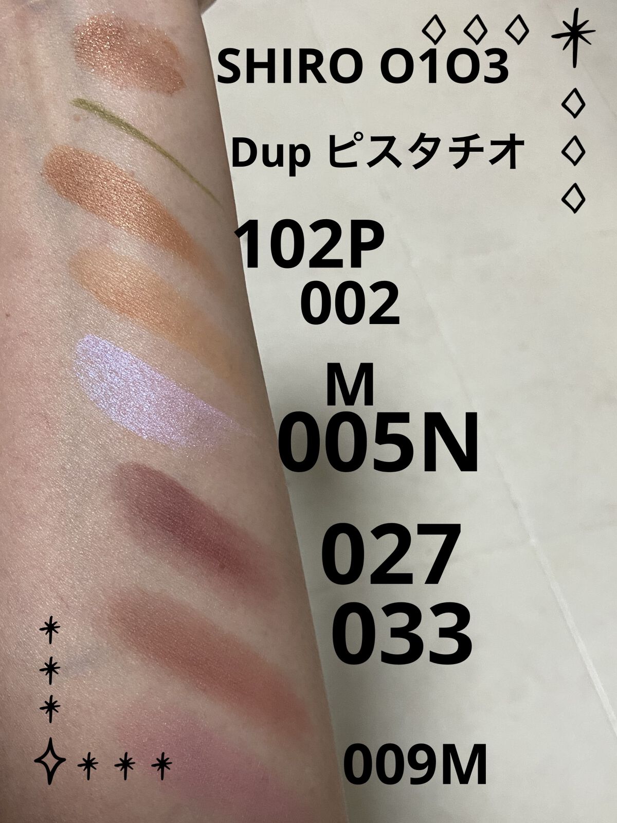 追加したのは薄いピンクだと思ったけど、03と19はわりとピンク系で、イエベの私はかなり薄く塗らなきゃいけない。 薄く優しい感じになります。 ピンク系は娘のメイクなどで使えそうです。 ダンスのイベントでメイクは必須なので無駄ではなさそう。 後悔なし。 集めたくなる。 甘い香りもたまらん。