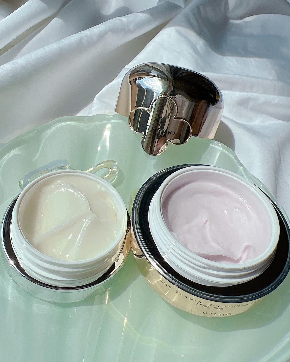 - 水分クリームマスク。クリームとマスクの2ステップで、それぞれに配合された美容保湿成分をお肌に与えます。いつものお手入れに加えるだけで、これまでにはなかったエイジングケア*を。*年齢に応じたお手入れ クリームマスク 90g(下段)/クリーム 20g(上段) 販売名:ココチ フェイシャル エッセンス クリームマスク ココチ リッチ エッセンス クリーム