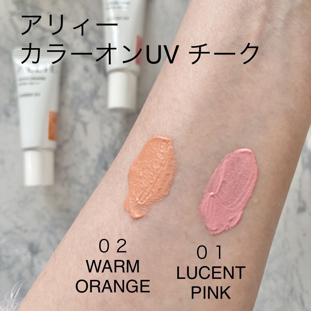 - ◆紫外線を浴びやすい、頬に使えるチークUV/鼻・頬に使える追いツヤUV ◆メイクの上から塗り直しとしても使える。 ◆汗・皮脂 マスクやタオルなどのこすれにも強く落ちにくい。 ◆「カラーUVヴェール技術」で、ベースメイクと混ざりにくく均一に密着。 SPF50+と感触の良さはそのままに素肌を活かした自然な色づきを両立! ◆8時間色持ち データ取得済み ※アリィー調べ。効果には個人差があります。 <基本情報> ・強力UV カット(SPF50+・PA++++) ・フリクションプルーフ:タオルやマスク等のこすれにも強く、落ちにくい ・スーパーウォータープルーフ:汗・水に抜群※²に強い機能 ※² アリィー商品内において LUCENT PINK(チーク 01) 自然に色づき血色感仕上がりの‟透け感ピンク” パッケージもピンクで、ポーチの中も華やぐメイクアイテムです WARM ORANGE(チーク 02) ヘルシーな血色感仕上げの‟じんわりオレンジ” じんわ~りと血色感を与えてくれるから、素肌を活かした自然な仕上がりに TRANSLUCENT(ラスター) ツヤ感を演出する‟シマーカラー” 鼻や頬にハイライトとして使うことで長時間ツヤが持続します