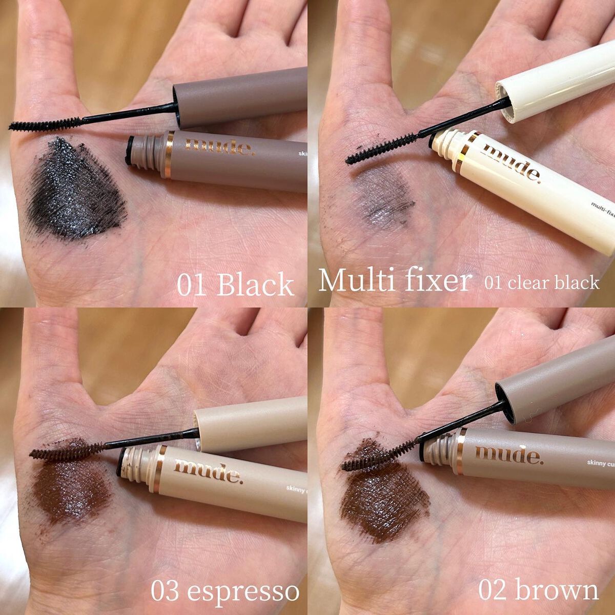 ◯mudeインスパイアマルチフィクサーマスカラ01クリアブラック『細かいブラシがもれなく自然により強力なフィクシング効果を与える#スキニーマスカラ&マルチフィクサー』♡フィクシングマルチプルーフ効果なめらかなつけ心地と素早い固定にじまなくきれ...