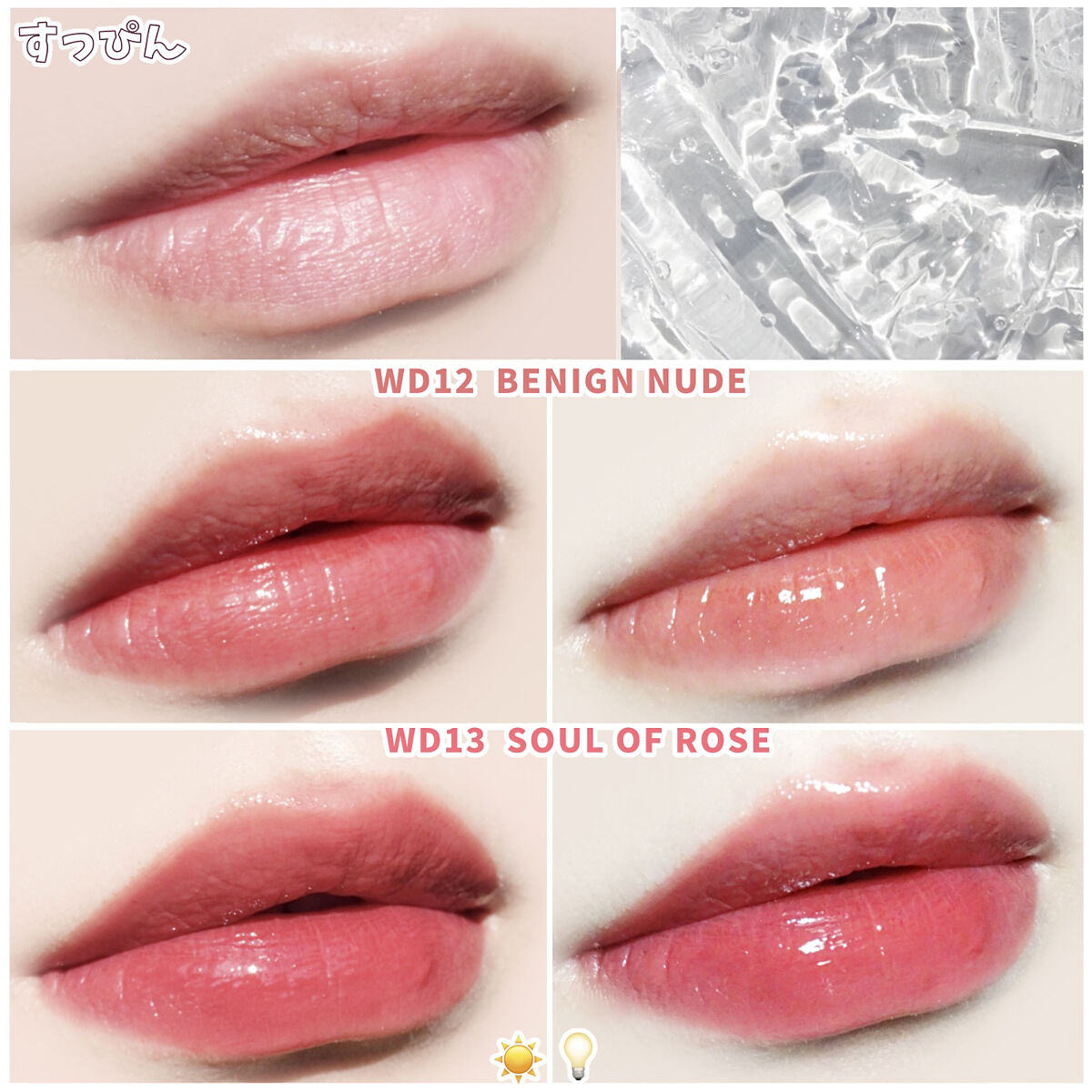 - <WD2 ビトゥン ローズ> 水、ジフェニルジメチコン、リンゴ酸ジイソステアリル、ビスジグリセリルポリアシルアジペート-2、水添ポリイソブテン、ジグリセリン、DPG、セチルPEG/PPG-10/1ジメチコン、イソステアリン酸ソルビタン、ポリソルベート60、ペンチレングリコール、オクチルドデカノール、セテアレス-20、(アクリル酸ヒドロキシエチル/アクリロイルジメチルタウリンNa)コポリマー、スクワラン、フェノキシエタノール、ポリグリセリン-3、ステビオシド、香料、エチルヘキシルグリセリン、グリセリン、シア脂、ツバキ種子油、トリ(カプリル酸/カプリン酸)グリセリル、アルガニアスピノサ核油、ホホバ種子油、アーモンド油、アンズ核油、月見草油、オリーブ果実油、テトラ(ジ-t-ブチルヒドロキシヒドロケイヒ酸)ペンタエリスリチル、カニナバラ果実エキス、マンゴー果実エキス、赤104(1)、赤227、黄5、青1 <WD3 ピンク ヘイズ> 水、ジフェニルジメチコン、リンゴ酸ジイソステアリル、ビスジグリセリルポリアシルアジペート-2、水添ポリイソブテン、ジグリセリン、DPG、セチルPEG/PPG-10/1ジメチコン、イソステアリン酸ソルビタン、ポリソルベート60、ペンチレングリコール、オクチルドデカノール、セテアレス-20、(アクリル酸ヒドロキシエチル/アクリロイルジメチルタウリンNa)コポリマー、スクワラン、フェノキシエタノール、ポリグリセリン-3、ステビオシド、香料、エチルヘキシルグリセリン、グリセリン、水酸化Al、ポリアクリル酸アンモニウム、BG、アルガニアスピノサ核油、シア脂、ツバキ種子油、トリ(カプリル酸/カプリン酸)グリセリル、アーモンド油、アンズ核油、ホホバ種子油、月見草油、オリーブ果実油、テトラ(ジ-t-ブチルヒドロキシヒドロケイヒ酸)ペンタエリスリチル、マンゴー果実エキス、カニナバラ果実エキス、酸化チタン、赤104(1)、赤227、黄5、青1 <WD4 オールウェイズ ヤング> 水、ジフェニルジメチコン、リンゴ酸ジイソステアリル、ビスジグリセリルポリアシルアジペート-2、水添ポリイソブテン、ジグリセリン、DPG、セチルPEG/PPG-10/1ジメチコン、イソステアリン酸ソルビタン、ポリソルベート60、ペンチレングリコール、オクチルドデカノール、セテアレス-20、(アクリル酸ヒドロキシエチル/アクリロイルジメチルタウリンNa)コポリマー、スクワラン、フェノキシエタノール、ポリグリセリン-3、ステビオシド、香料、エチルヘキシルグリセリン、グリセリン、シア脂、ツバキ種子油、トリ(カプリル酸/カプリン酸)グリセリル、アルガニアスピノサ核油、ホホバ種子油、アーモンド油、アンズ核油、月見草油、オリーブ果実油、テトラ(ジ-t-ブチルヒドロキシヒドロケイヒ酸)ペンタエリスリチル、カニナバラ果実エキス、マンゴー果実エキス、赤104(1)、赤227、黄5、青1 <WD6 クラッシュド パンプキン> 水、水添ポリイソブテン、リンゴ酸ジイソステアリル、ビスジグリセリルポリアシルアジペート-2、ジフェニルシロキシフェニルトリメチコン、ジフェニルジメチコン、ポリグリセリン-3、オクチルドデカノール、ポリソルベート60、セチルPEG/PPG-10/1ジメチコン、ラウリン酸ポリグリセリル-10、ペンチレングリコール、1,2-ヘキサンジオール、(アクリル酸ヒドロキシエチル/アクリロイルジメチルタウリンNa)コポリマー、PEG-60水添ヒマシ油、セテアリルアルコール、スクワラン、キシリトール、エチルヘキシルグリセリン、香料、ポリアクリル酸アンモニウム、イソステアリン酸ソルビタン、水酸化Al、フェノキシエタノール、BG、トコフェロール、酸化チタン、酸化鉄、赤227、黄4、黄5、青1 <WD8 ビンテージ カラント> 水、水添ポリイソブテン、リンゴ酸ジイソステアリル、ビスジグリセリルポリアシルアジペート-2、ジフェニルシロキシフェニルトリメチコン、ジフェニルジメチコン、オクチルドデカノール、ポリグリセリン-3、ポリソルベート60、セチルPEG/PPG-10/1ジメチコン、ラウリン酸ポリグリセリル-10、1,2-ヘキサンジオール、ペンチレングリコール、(アクリル酸ヒドロキシエチル/アクリロイルジメチルタウリンNa)コポリマー、PEG-60水添ヒマシ油、セテアリルアルコール、スクワラン、キシリトール、エチルヘキシルグリセリン、香料、イソステアリン酸ソルビタン、トコフェロール、赤104(1)、赤227、黄5、青1 <WD9 ミスター ストレンジャー> 水、水添ポリイソブテン、リンゴ酸ジイソステアリル、ビスジグリセリルポリアシルアジペート-2、ジフェニルシロキシフェニルトリメチコン、ジフェニルジメチコン、オクチルドデカノール、ポリグリセリン-3、ポリソルベート60、セチルPEG/PPG-10/1ジメチコン、ラウリン酸ポリグリセリル-10、1,2-ヘキサンジオール、ペンチレングリコール、(アクリル酸ヒドロキシエチル/アクリロイルジメチルタウリンNa)コポリマー、セテアリルアルコール、PEG-60水添ヒマシ油、スクワラン、キシリトール、エチルヘキシルグリセリン、香料、イソステアリン酸ソルビタン、水酸化Al、ポ