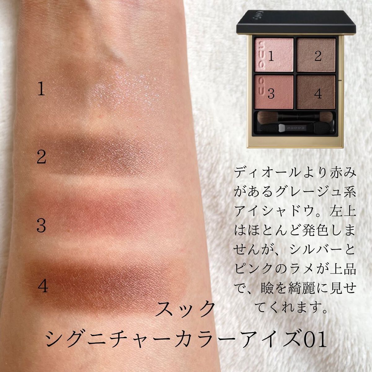 サテンのような繊細な粉質でラメ感というよりはパールのようなツヤ感のあるしっとり質感✨ 全体的に涼しげな優しい、上品な色合い! ナチュラルで上品な発色なので #オフィスメイク にもピッタリです✨
