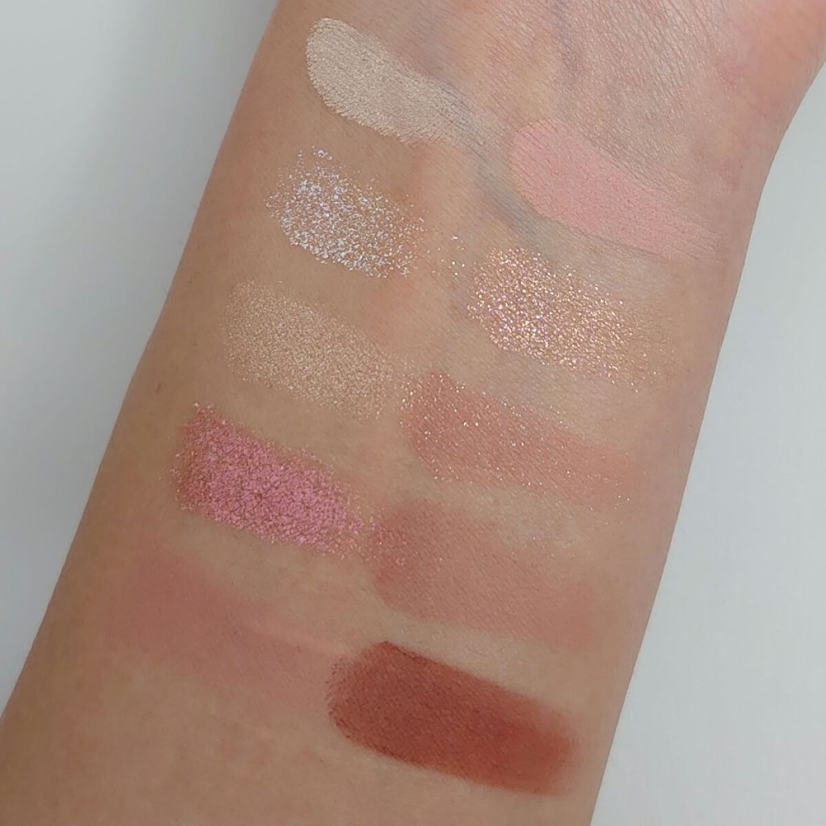 普段使いしやすいカラーや、お休みの日にもラメを足して、濃くして楽しめたりしそうだと思いました。 粉質も溶け込むような質感だったり、しっとり目なラメだったり。 案外薄付きだなとは思いますので、ナチュラル好きな方にも使いやすいと思いましたし、粉飛びや、ラメ飛びもなかったように思いました。