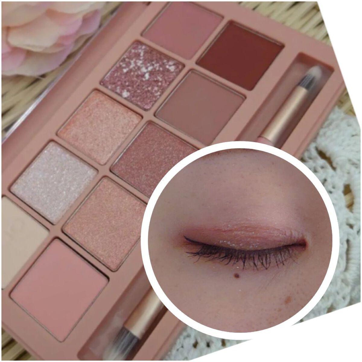 粉がしっとりでめっちゃ発色が良かったです!! 肌によく密着するのでヨレにくそうでした✨ 色合いも今からにピッタリな秋冬カラーで 左下の赤っぽい色がお気に入りです♡ 実はこれプチプラなんです