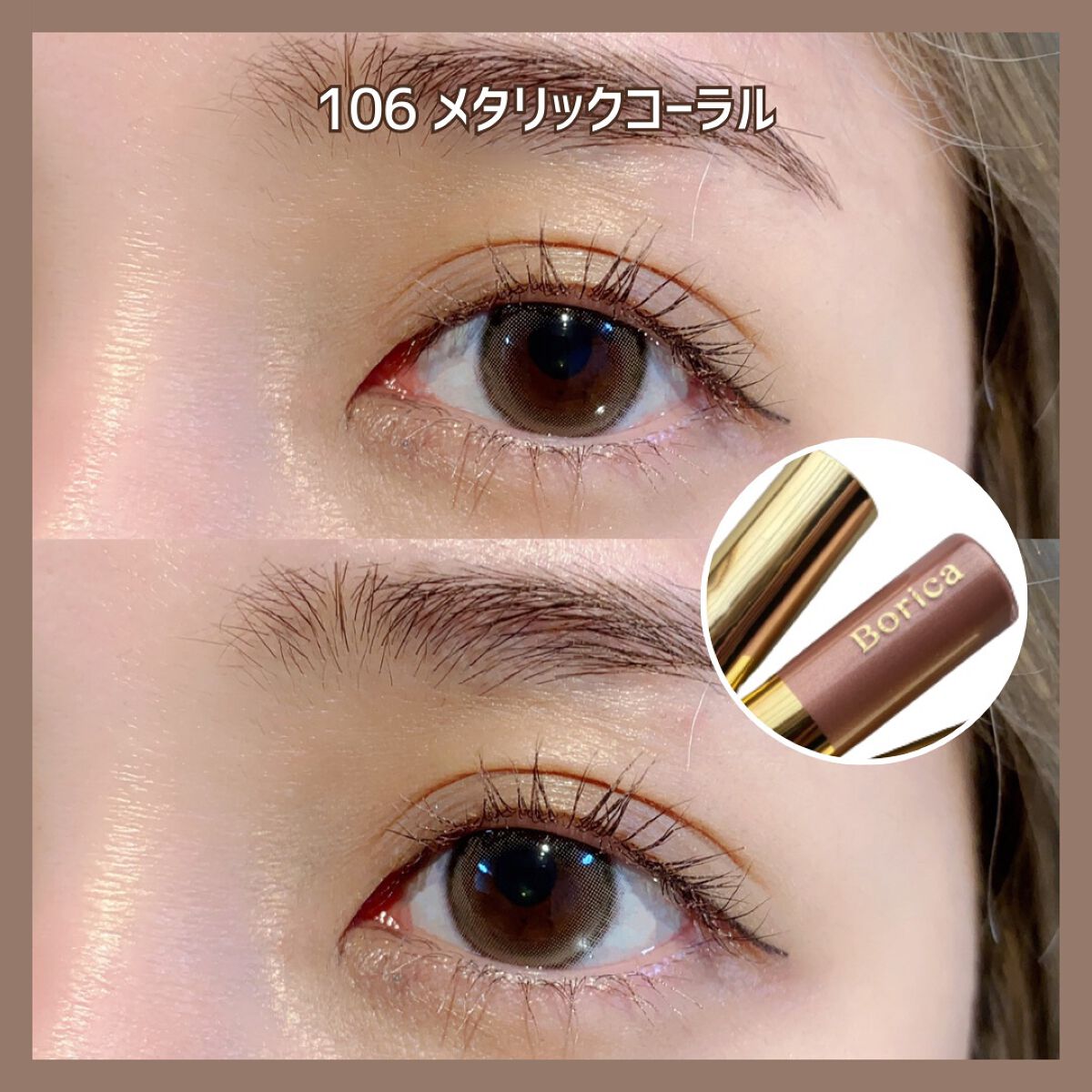 - <101 メタリックブロンズ> 水、(アクリレーツ/アクリル酸エチルヘキシル)コポリマー、BG、ミツロウ、カルナウバロウ、ステアリン酸、シリカ、TEA、PVP、ジフェニルシロキシフェニルトリメチコン、ステアリン酸ソルビタン、パルミチン酸、ワセリン、(HDI/トリメチロールヘキシルラクトン)クロスポリマー、ジメチコン、ポリソルベート60、ミリスチン酸、ラウレス-21、フェノキシエタノール、エチルヘキシルグリセリン、メチルパラベン、ヒドロキシエチルセルロース、トコフェロール、パンテノール、グリセリン、加水分解コラーゲン、PCA-Na、乳酸Na、ヒアルロン酸Na、リンゴ果実培養細胞エキス、アルギニン、アスパラギン酸、PCA、ローズマリー葉エキス、ビワ葉エキス、マグワ根皮エキス、グリシン、アラニン、キサンタンガム、センチフォリアバラ花エキス、ブドウ葉エキス、加水分解コンキオリン、セリン、ノイバラ果実エキス、バリン、イソロイシン、トレオニン、プロリン、ヒスチジン、フェニルアラニン、レシチン、ユズ果実エキス、ビオチノイルトリペプチド-1、酸化鉄、Al、マイカ、タルク <102 メタリックゴールド> 水、(アクリレーツ/アクリル酸エチルヘキシル)コポリマー、BG、ミツロウ、カルナウバロウ、ステアリン酸、シリカ、TEA、PVP、ジフェニルシロキシフェニルトリメチコン、ステアリン酸ソルビタン、パルミチン酸、ワセリン、(HDI/トリメチロールヘキシルラクトン)クロスポリマー、ジメチコン、ポリソルベート60、ミリスチン酸、ラウレス-21、フェノキシエタノール、エチルヘキシルグリセリン、メチルパラベン、ヒドロキシエチルセルロース、トコフェロール、パンテノール、グリセリン、加水分解コラーゲン、PCA-Na、乳酸Na、ヒアルロン酸Na、リンゴ果実培養細胞エキス、アルギニン、アスパラギン酸、PCA、ローズマリー葉エキス、ビワ葉エキス、マグワ根皮エキス、グリシン、アラニン、キサンタンガム、センチフォリアバラ花エキス、ブドウ葉エキス、加水分解コンキオリン、セリン、ノイバラ果実エキス、バリン、イソロイシン、トレオニン、プロリン、ヒスチジン、フェニルアラニン、レシチン、ユズ果実エキス、ビオチノイルトリペプチド-1、Al、マイカ、酸化鉄、タルク、酸化チタン <103 メタリックエメラルド> 水、(アクリレーツ/アクリル酸エチルヘキシル)コポリマー、BG、ミツロウ、カルナウバロウ、ステアリン酸、シリカ、TEA、PVP、ジフェニルシロキシフェニルトリメチコン、ステアリン酸ソルビタン、パルミチン酸、ワセリン、(HDI/トリメチロールヘキシルラクトン)クロスポリマー、ジメチコン、ポリソルベート60、ミリスチン酸、ラウレス-21、フェノキシエタノール、エチルヘキシルグリセリン、メチルパラベン、ヒドロキシエチルセルロース、トコフェロール、パンテノール、グリセリン、加水分解コラーゲン、PCA-Na、乳酸Na、ヒアルロン酸Na、リンゴ果実培養細胞エキス、アルギニン、アスパラギン酸、PCA、ローズマリー葉エキス、ビワ葉エキス、マグワ根皮エキス、グリシン、アラニン、キサンタンガム、センチフォリアバラ花エキス、ブドウ葉エキス、加水分解コンキオリン、セリン、ノイバラ果実エキス、バリン、イソロイシン、トレオニン、プロリン、ヒスチジン、フェニルアラニン、レシチン、ユズ果実エキス、ビオチノイルトリペプチド-1、Al、水酸化クロム、銀、グンジョウ、マイカ、タルク、酸化鉄、酸化スズ <104 メタリックピンク> 水、(アクリレーツ/アクリル酸エチルヘキシル)コポリマー、BG、ミツロウ、カルナウバロウ、ステアリン酸、TEA、PVP、ジフェニルシロキシフェニルトリメチコン、ステアリン酸ソルビタン、パルミチン酸、ワセリン、(HDI/トリメチロールヘキシルラクトン)クロスポリマー、ジメチコン、ポリソルベート60、ミリスチン酸、ラウレス-21、フェノキシエタノール、エチルヘキシルグリセリン、メチルパラベン、ヒドロキシエチルセルロース、トコフェロール、パンテノール、グリセリン、加水分解コラーゲン、PCA-Na、乳酸Na、ヒアルロン酸Na、リンゴ果実培養細胞エキス、アルギニン、アスパラギン酸、PCA、ローズマリー葉エキス、ビワ葉エキス、マグワ根皮エキス、グリシン、アラニン、キサンタンガム、センチフォリアバラ花エキス、ブドウ葉エキス、加水分解コンキオリン、セリン、ノイバラ果実エキス、バリン、イソロイシン、トレオニン、プロリン、ヒスチジン、フェニルアラニン、レシチン、ユズ果実エキス、ビオチノイルトリペプチド-1、合成フルオロフロゴパイト、シリカ、マイカ、タルク、酸化鉄、酸化チタン、AI、銀、水酸化AI、グンジョウ、赤226、酸化スズ <201 ブルージュブラック> 水、(アクリレーツ/アクリル酸エチルヘキシル)コポリマー、BG、ミツロウ、カルナウバロウ、ステアリン酸、TEA、PVP、ジフェニルシロキシフェニルトリメチコン、ステアリン酸ソルビタン、パルミチン酸、ワセリン、(HDI/トリメチロールヘキ