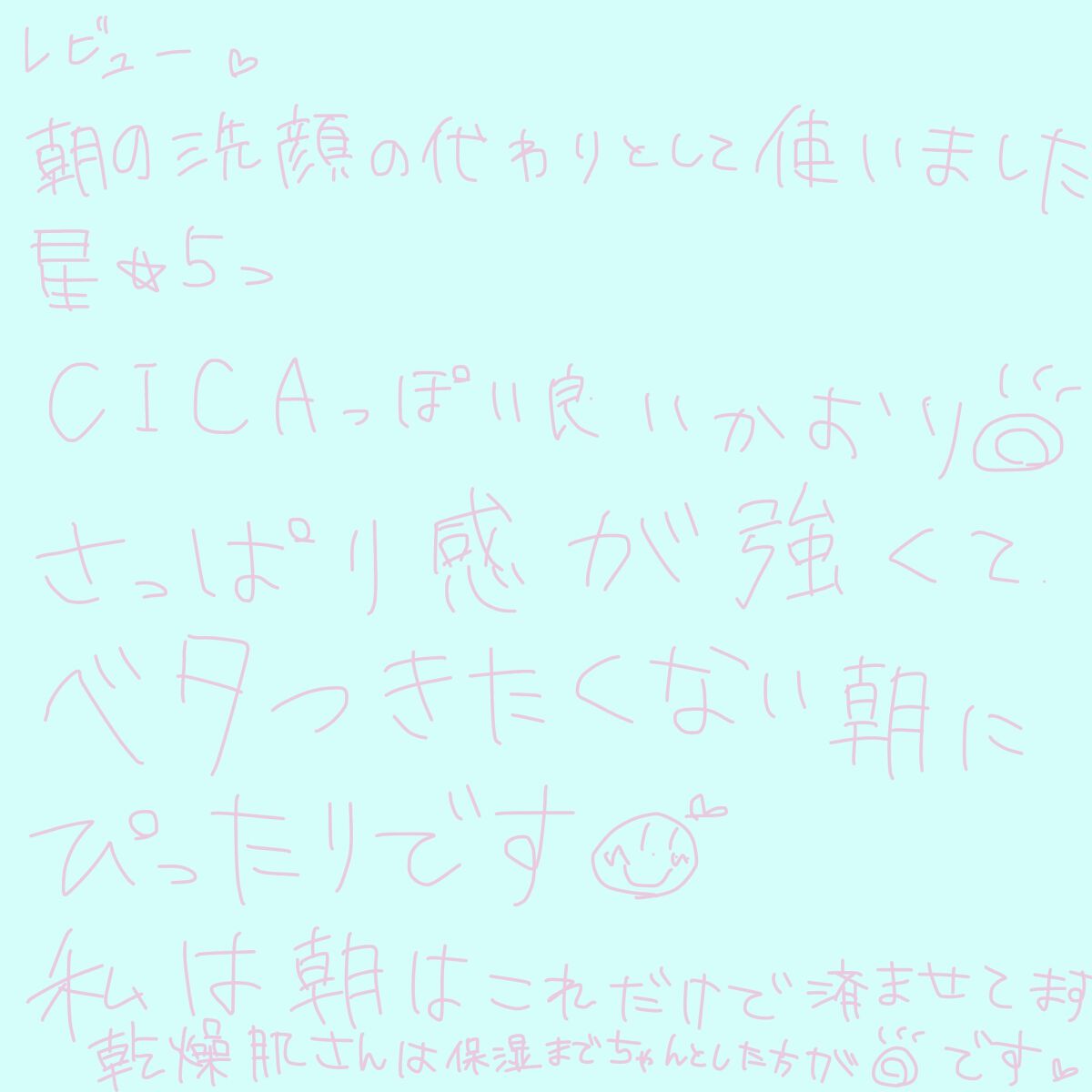 - <CICA マイルドトナーパッド> 水、グリセリン、BG、サリチル酸、ツボクサエキス、ヒアルロン酸Na、アシアチコシド、マデカッソシド、マデカシン酸、アシアチン酸、プロポリスエキス、ホソバニンジンエキス、ハマメリス葉エキス、セイヨウシロヤナギ樹皮エキス、アラントイン、β-グルカン、トロメタミン、コハク酸ジエトキシエチル、クロルフェネシン、ラウリン酸ポリグリセリル-10、ミリスチン酸ポリグリセリル-10、エチルヘキシルグリセリン、デキストリン、クチナシ果実エキス、EDTA-2Na、トコフェロール、プロパンジオール、ベタイン、グリチルリチン酸2K、香料、1,2 -ヘキサンジオール