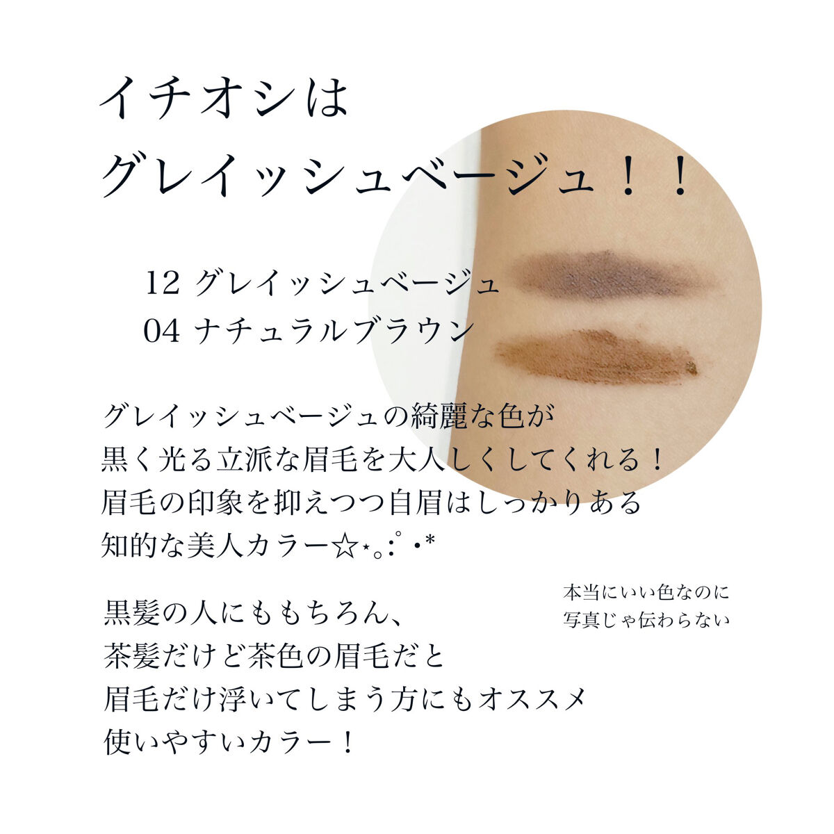 ヘビーローテーションカラーリングアイブロウ12グレイッシュベージュを2025/4/8に開けました!グレイが強くて、色味が今の髪色とあんまり合わない気がしてます..もう少し髪を暗くしたら使おうかなと!まだKATEの3DアイブロウカラーNが残って...