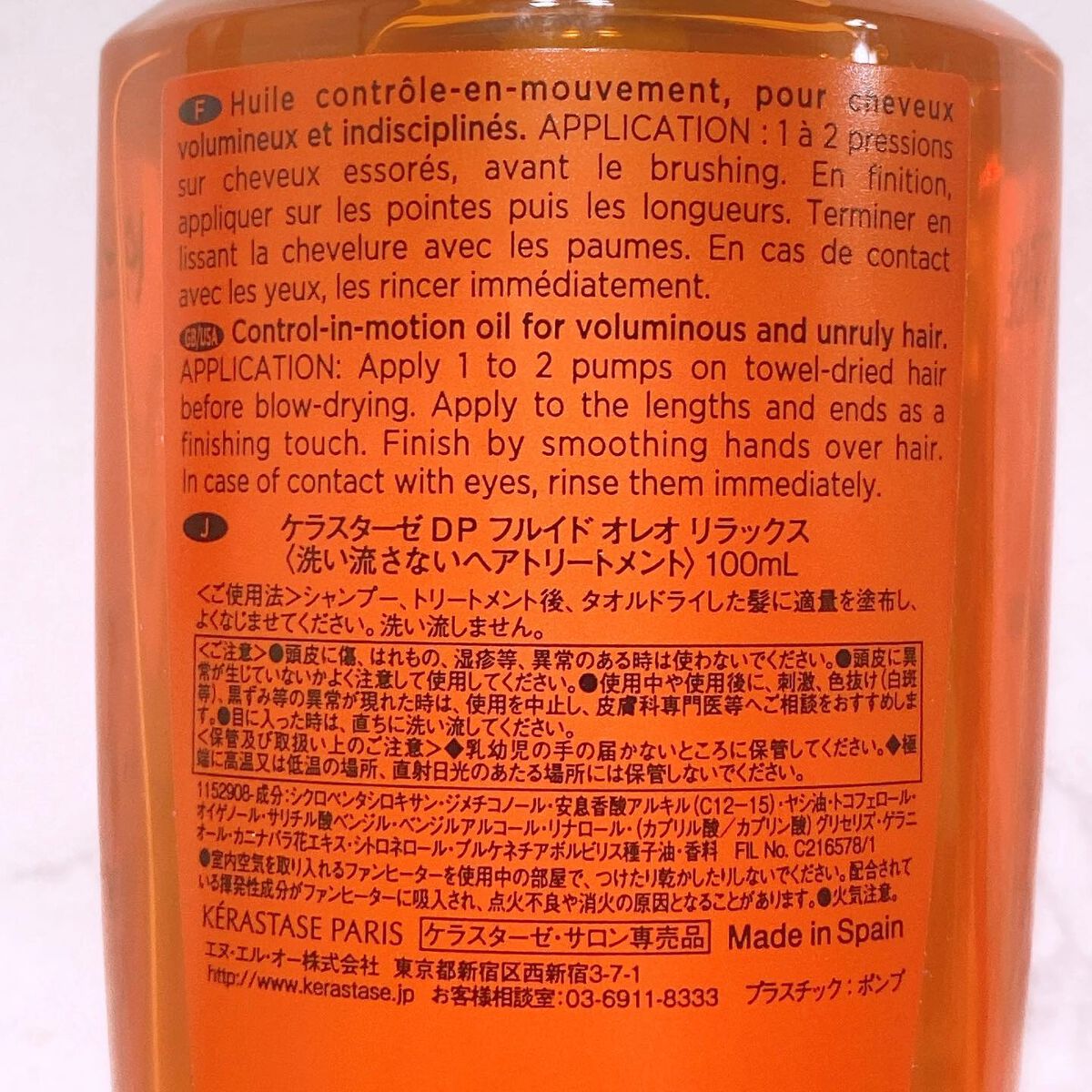 商品詳細情報ケラスターゼ DP フルイド オレオ リラックス