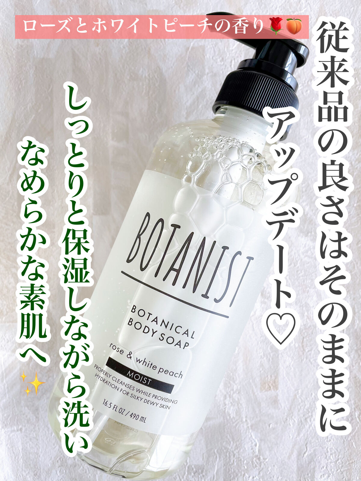 植物の恵みで、洗うたび、肌のキメ整うボディーソープ。しっとりと保湿しながら洗い、なめらかな素肌へ。 とにかく良い匂いすぎて、とっても癒される香りです☺️ネットで泡立てて使っていますが、少量で泡立ちがよく、しっとり洗えてスベスベになります🫧 植物由来の保湿成分「ボタニカルバターミルク」を配合。ボタニストボディーシリーズ共通のこだわり、リッチな保湿力となめらかな手触りで、洗いながら潤いをキープします。