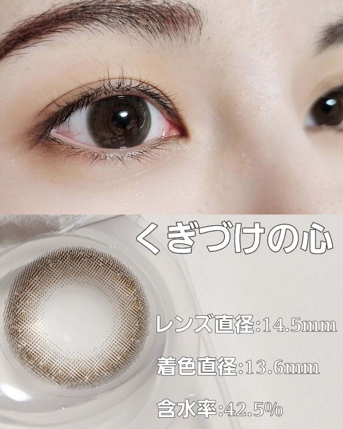- ※2023年6月〜製品ラベルのデザインを一部変更いたします(順次切替予定)。尚これに係る商品の返品・交換等は承っておりません。 ”もっとバレずに盛れる” レンズデザインに極小ドットを採用することで、本来の瞳の色に溶け込むように馴染み、よりバレにくいナチュラルな仕上がりに。 ■パールスノーグレー(Pearl Snow Gray) ちゅるんとした絶妙グレーで透明感と抜け感のある瞳になれるデザイン。 ■テディモカ(Teddy Mocha) 甘モテ♡色っぽちゅるんオトナのミュートブラウン くりっと甘い盛り感で色気ただよう、ちゅるんな瞳 ■ミルクブラウニー(Milk Brownie) “ナチュ盛り♡ふわちゅるん”ピュアなブラウンベージュ 柔らかなミルクブラウンで甘さたっぷり、ピュアな瞳 DIA:14.5mm BC:8.7mm 中心厚:0.08mm( -3.00D ) 含水率: 38.6%(※ナチュラルブラウン、シャンパンブラウン、ナチュラルブラック) 42.5%(※アプリコットブラウン・ナチュラルモカ・クラシックチーク・クリアキャメル・パールベージュ・スムースコーラル・くぎづけの心・ひとめぼれの恋・パールスノーグレー・テディモカ ・ミルクブラウニー) カラーコンタクトレンズの不適正使用による眼障害の危険性等などがあります。 ●コンタクトレンズは高度管理医療機器です。不十分な洗浄・消毒など不適切なケアや、長時間・交換期間を超えた装用により、アレルギー性結膜炎、角膜感染症、角膜潰瘍等の重篤な眼障害が発生する危険性があります ●ご使用前に取扱説明書を確認してください 使用上の留意事項 ●眼科医院等を受診してからお求めください ●眼に異常を感じたら直ちにレンズ使用を中止し、お近くの眼科等で診察を受けてください ●医師の指示にしたがってご使用ください ●コンタクトレンズを装用する場合、自覚症状がなくても、眼科医院等での定期検査を受けてください ●レンズに不具合がある場合は使用しないでください