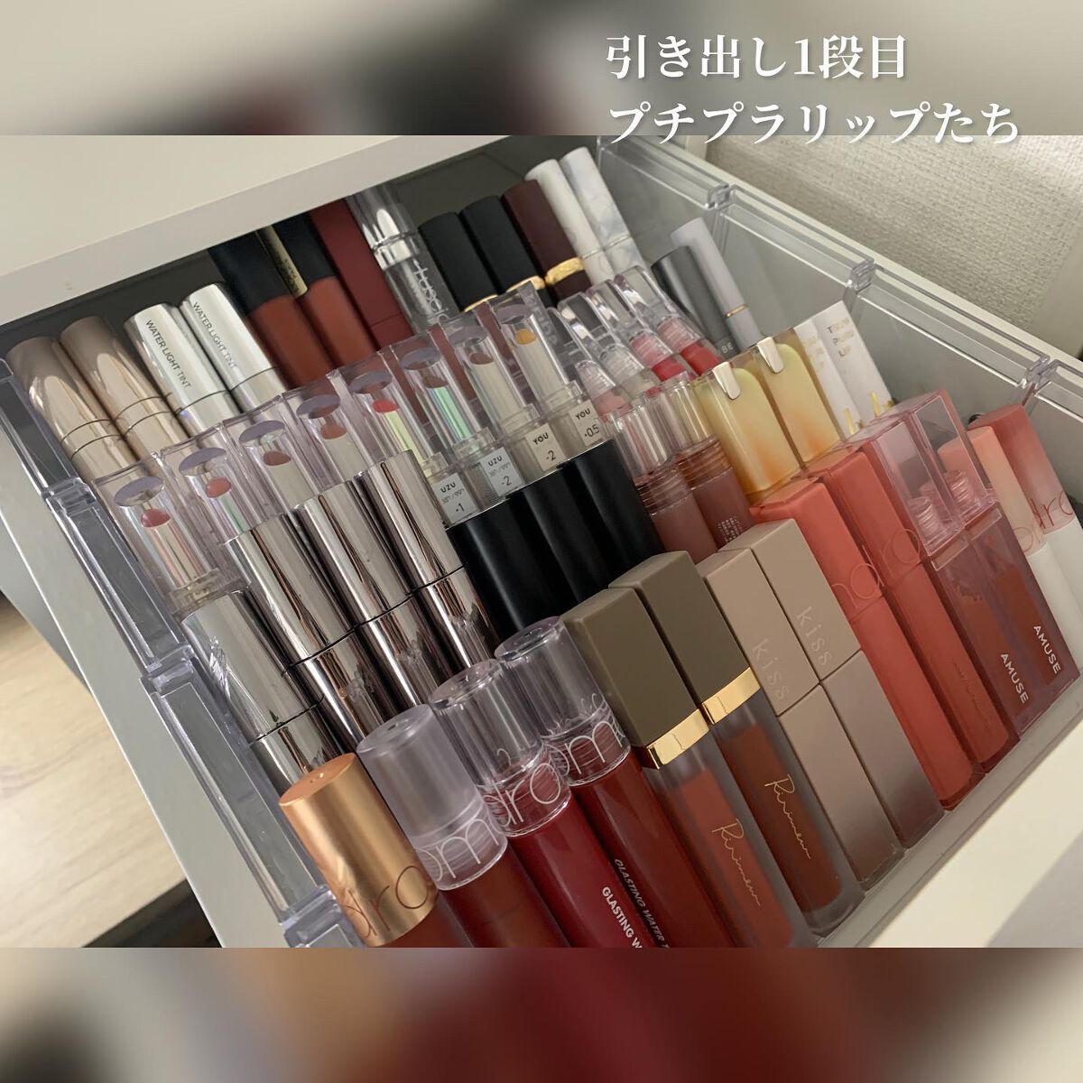 最近は在庫も安定してきて わりとどこの薬局でも見かけるようになってきました😍 リップモンスター全色スウォッチ! 限定色と01.02以外は所持してます! イエベ秋の私が1番使ってるのは オレンジブラウン系の 04番ですが、 03番と05番も今っぽいオシャレカラーでお気に入り🥹🥹 ツヤ仕上がりなので乾燥も気になりにくく、 落ちにくいってバズったけど 飲食すると私は普通に落ちちゃう🧐 でも使い心地が好きなので 迷った時は使っちゃいます!! これからも沢山集めたい🥰🥰