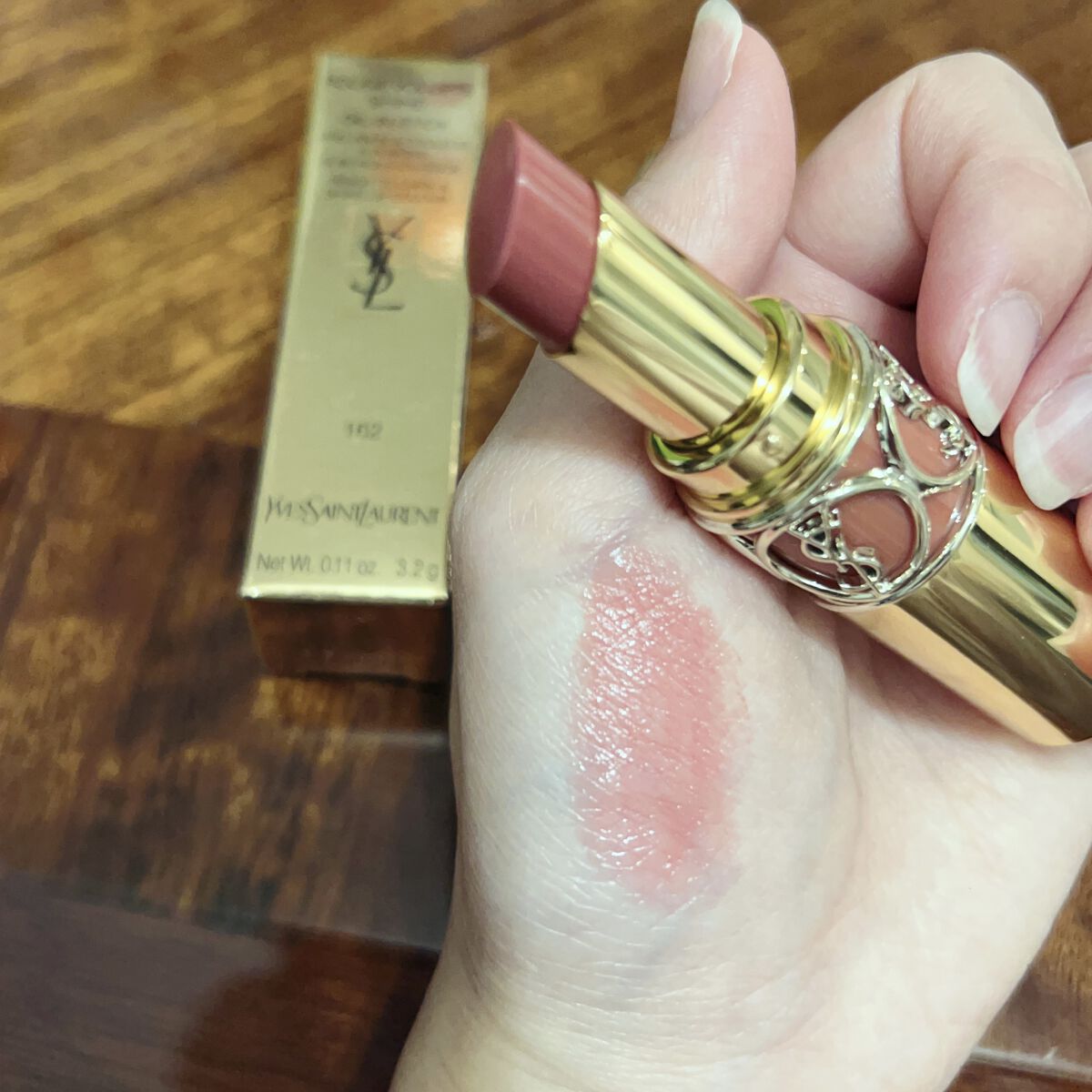 ツヤツヤ高発色でもちが良く乾燥しない。 この色は肌馴染みが良いので特に使いやすいと思い、色を見た瞬間購入しました♥️ 朝家を出る前に塗っておけばいつマスクをとってもOKです! 香りも良く、気分が上がるリップです! ベタつかずなめらかでさらっとした付け心地なので出がけにつけたり持ち歩きにもぴったりです。