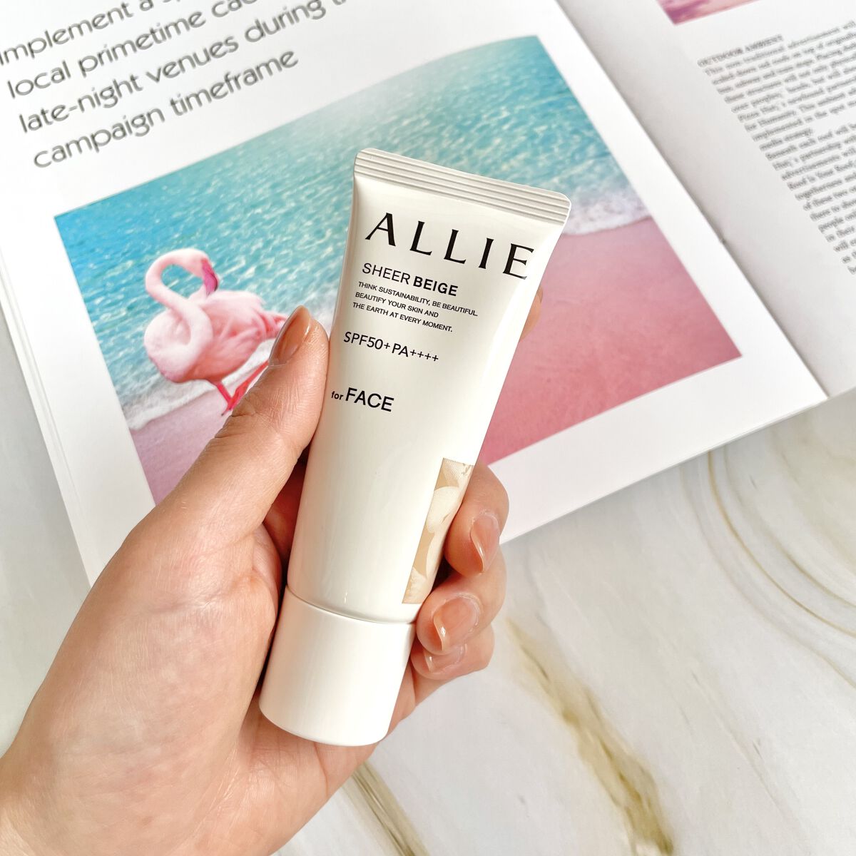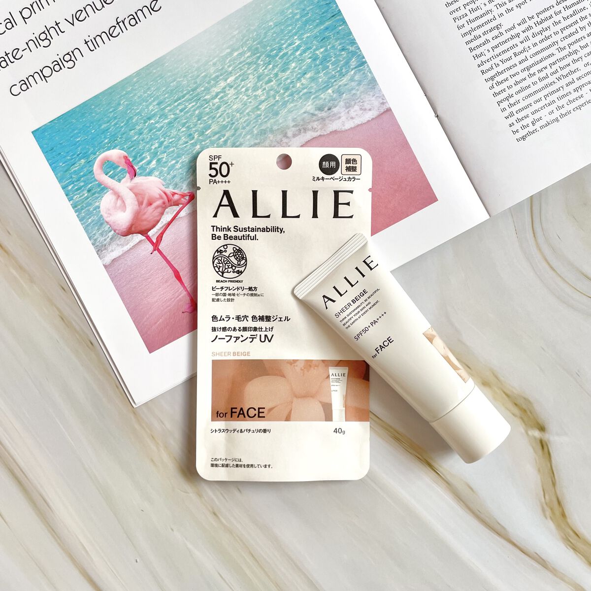 - 世界を想う 美しさつづく*1 日やけ止め おでかけも、マスクを外す機会も増える毎日に。 一部の国・地域・ビーチの規制に配慮した設計のビーチフレンドリー処方。 これ 1 本で、UV カット&顔色補整効果でクマ・くすみ・色ムラまでカバー! テカりにくく、くずれにくいノーファンデ UV*2 【ENNUI PURPLE】 くすみや毛穴をカバー 儚げな透明感のある顔印象続く 澄んだ気分を誘う 紫陽花しずく&セージの香り 【SUNNY APRICOT】 クマや毛穴をカバー いきいきとした血色感のある顔印象つづく 思わず出かけたくなる アプリコット&金木犀の香り 【SHERR BEIGE】 色ムラや毛穴をカバー 均一で抜け感のある顔印象つづく 自然で飾らない シトラスウッディ&パチュリの香り ●一部の国・地域・ビーチの規制に配慮した設計の「ビーチフレンドリー処方」 ●SPF50+・PA++++ ●汗・水 こすれに強く落ちにくい フリクションプルーフ・スーパーウォータープルーフ ●ベタつきにくい感触がつづく ●テカりにくくキレイな肌仕上がりがつづく ●環境に配慮した素材を使用したパッケージ採用 ●美容液成分(保湿)ヒアルロン酸Na配合 ●顔用 ●普段のメイククレンジングで落とせる ●マスク・タオル等につきにくい ●化粧下地効果 *1 スキンケア効果またはメイクアップ効果による肌仕上がりのこと *2 ファンデーション未使用時でも、自然なベースメイクが仕上がる日やけ止めのこと *3 チリ・ほこり・PM2.5・花粉等すべての微粒子汚れの付着を防ぐわけではありません 01:ENNUI PURPLE パープル 02:SUNNY APRICOT アプリコットピンク 03:SHEER BEIGE ミルキーベージュ