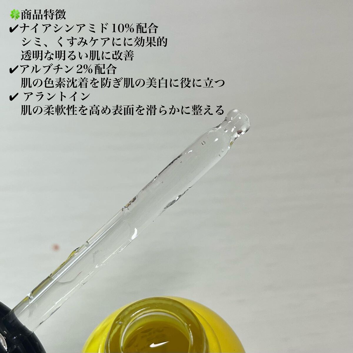 この美容液、本当にいいです!!! まずくすみ改善&肌美白が期待できるナイアシンアミドが10%と高濃度なのも嬉しいし、色素沈着防止&肌トーンの改善が期待できるアルブチンを2%配合というダブル配合💛 敏感低刺激ビーガン処方だから毎日安心して使えるんです🥹✨ なのに40ml 2,200円という最強コスパ、、、、!! 使い心地も混合肌大歓喜のベタつかないテクスチャーで、すーっと肌に浸透してくれます◎