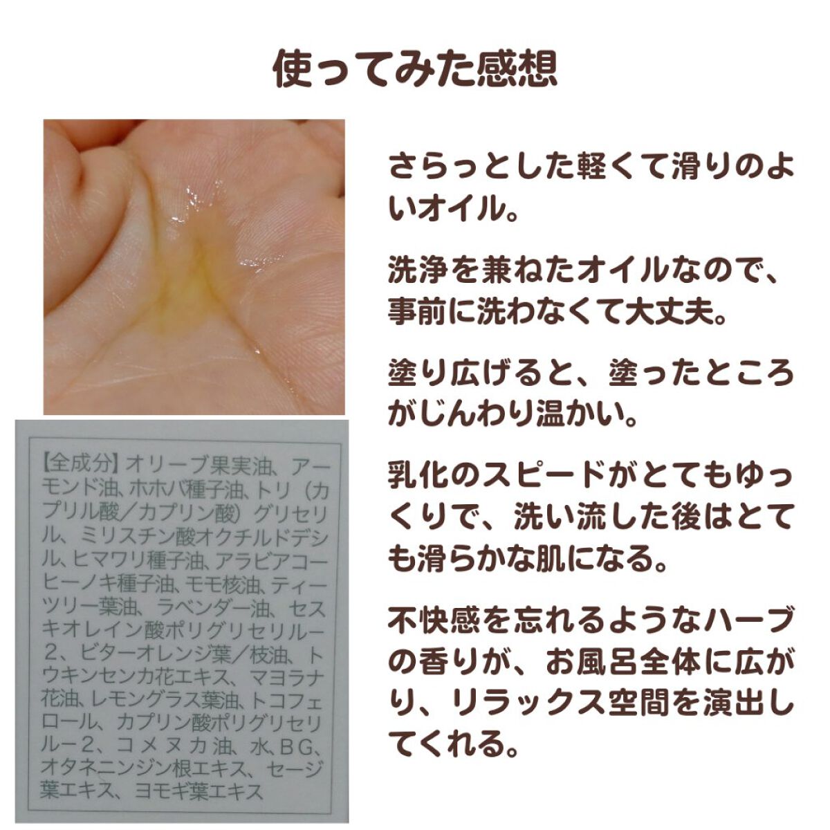 | 柑橘系の香りがとても好き🫶🏻✨よりオイルの肌あたりも良くなって使い心地が良かった | 詳細を見る |