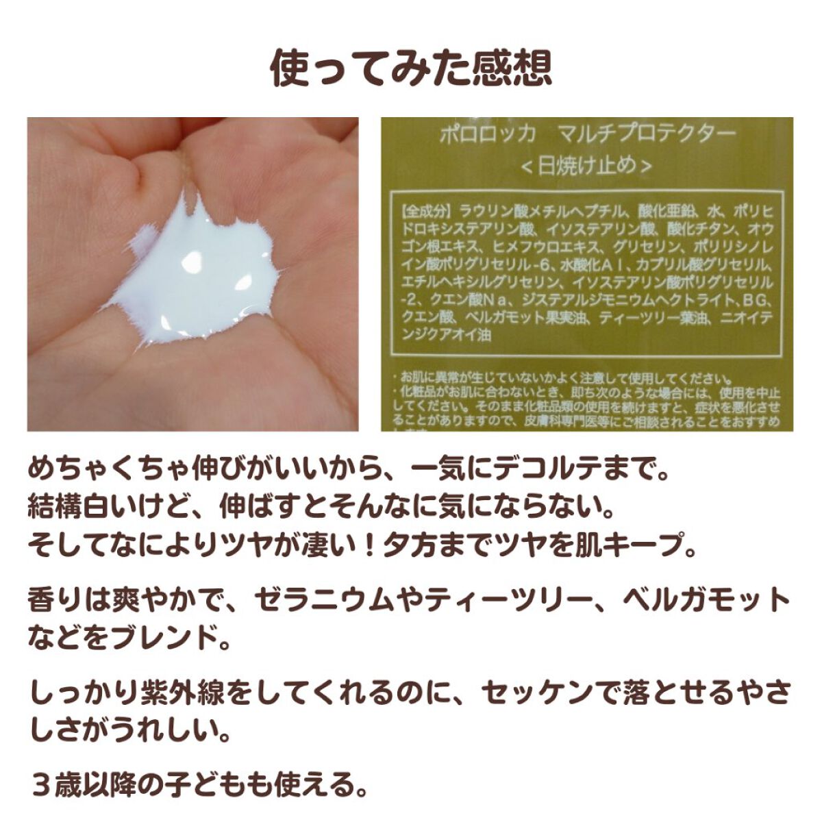 | とにかく軽〜い付け心地!するーっと伸びやすく、腕や足など広い範囲もスイスイ塗りやすい。 | 詳細を見る | ||