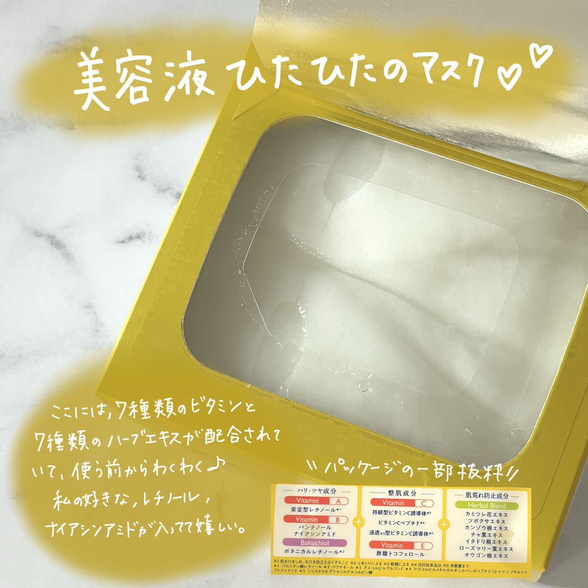 | スキンケアランキング第36位 | シートがみかん色でびっくり! とろっとろの液が含まれていて 貼り付けたらぴたーっとくっついてすごく気持ちいい! | 詳細を見る | |