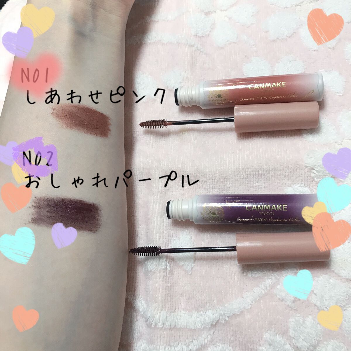 柔らかなピンク眉になります🩷 地肌につかず、塗りやすいです。ブラシはより丸くて短め。CEZANNEよりピンク色に染まり、ピンクメイクするときにおすすめ💕 優しいピンクブラウンに色づきます CANMAKEよりブラウン強めです🤎 塗りやすく、地肌につきません。ブラシはCANMAKEより細長い。仕上がりがナチュラルなので、日常使いにおすすめ👍