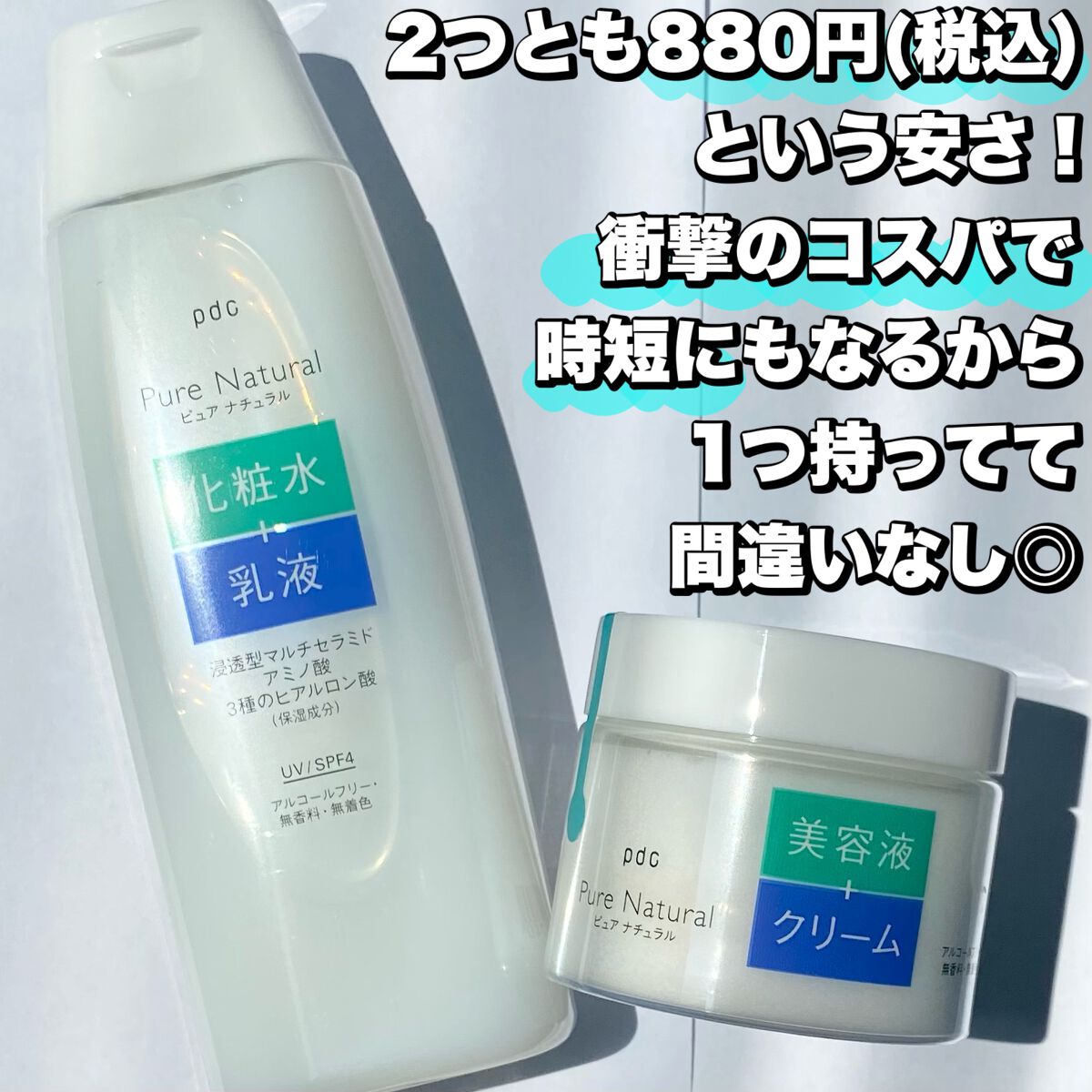 pdcピュアナチュラルエッセンスローションUVスキンケアをするのが面倒くさい時にとりあえずこれを使用してます😂❣️化粧水と乳液これひとつで乾燥対策にも✨乾燥による敏感肌にも🆗テクスチャーはとろっとしたみずみずしい乳液タイプ。肌馴染みがよくスー...