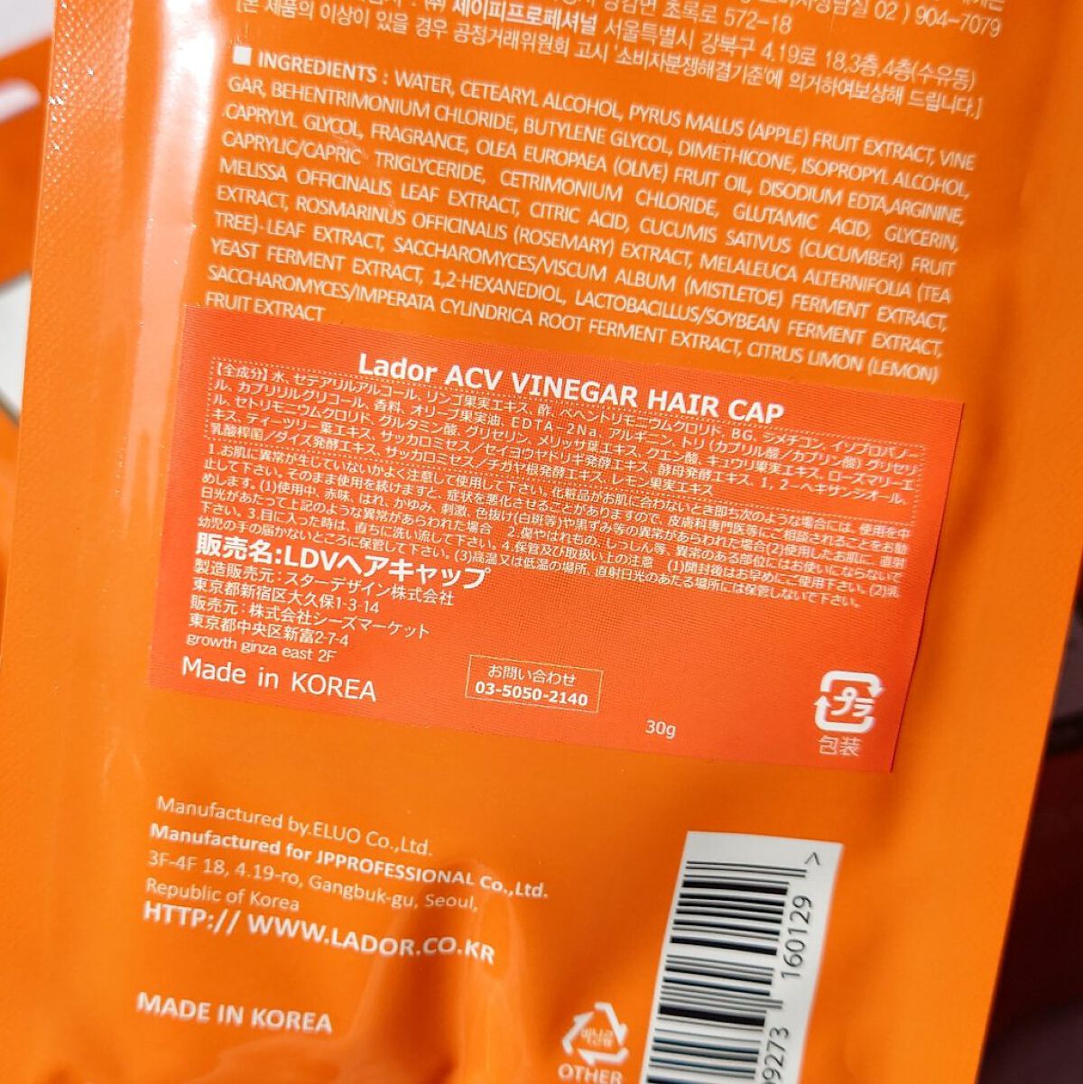 商品詳細情報La'dor ACV VINEGAR HAIR CAP