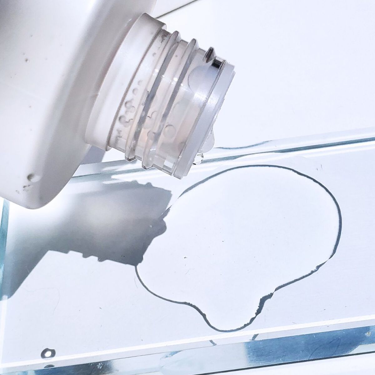 軽い乳液みたいにスルスル伸びて水分感のあるサンエッセンス。 ベタベタしないのに程よくしっとりして日焼け止めってよりほんとにスキンケアって感じ🤭 けどね、油分でメイクが崩れる感じではなくてしっとり水分保湿って感じでメイクのり良くなるやつ! 伸ばすと肌に馴染んで白浮きもしないし 日焼け止め特有のモキュモキュ感もなければ変に乾燥する感じもないし 日焼け止めにブルーライトカット機能もあるってすごい! ポンプなのが使いやすくて衛生的でいい◎