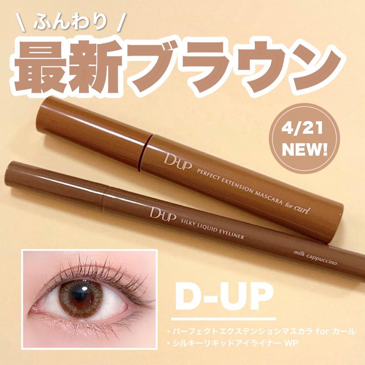 パーフェクトエクステンションマスカラ for カール マスカラ新色 『モカベージュ』 小さめブラシで小回り◎+カールブラシが目のカーブにフィットして塗りやすい🥰 シルキーリキッドアイライナー アイライナー新色 『ミルクカプチーノ』 目尻までかすれず滑らかに理想のラインが描けて、長時間キープ😘 王道ブラウンよりも、柔らかな存在感 やわらかい雰囲気を作りたいときはこれ😍