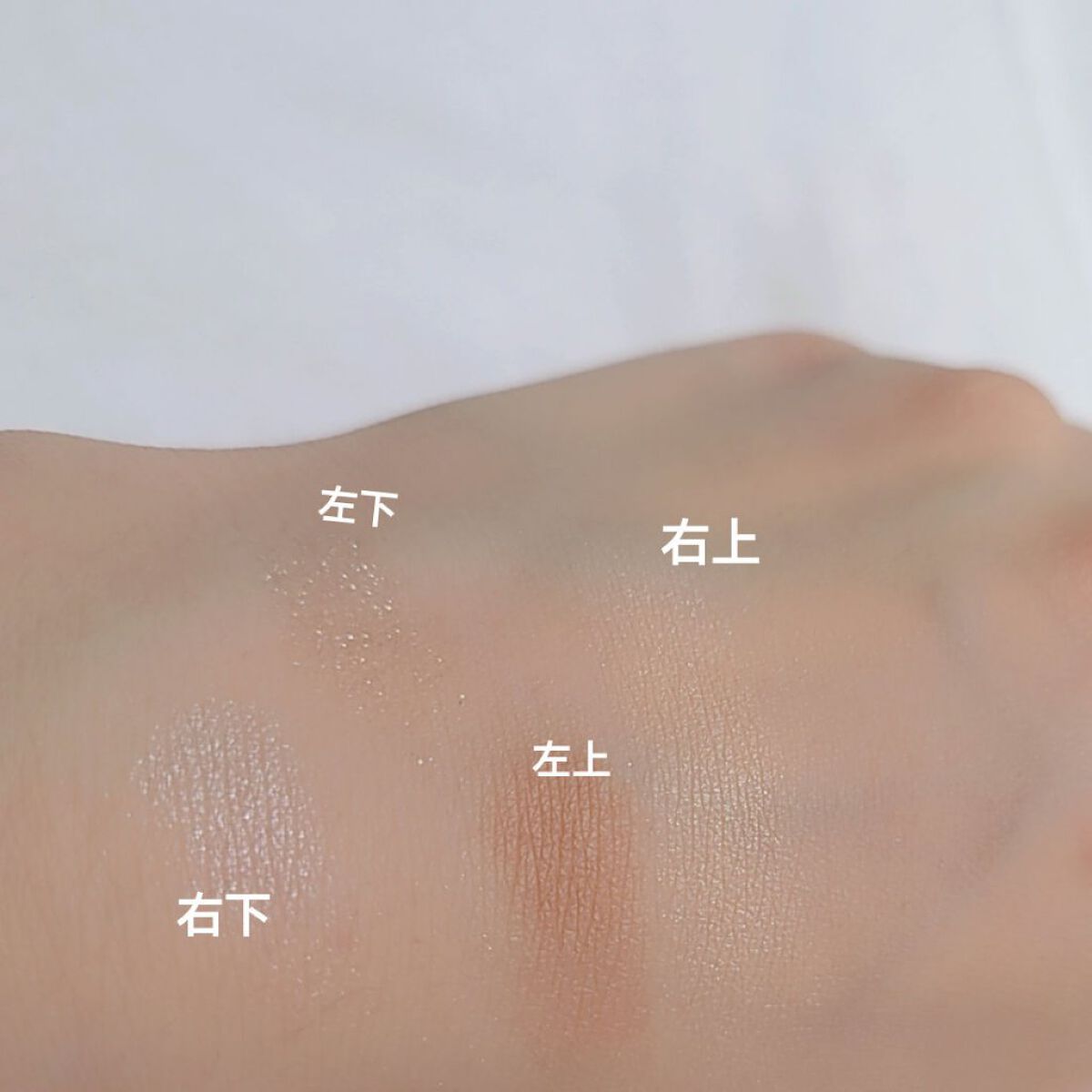 パール感が控えめで使いやすい 青みが強すぎない パッと見たときは「青み強いな…」と思ったけど、塗るとそこまででもない。特に、左上は黄みがかっているように見えた。 薄く塗ればくすみは気にならない 指で塗っても綺麗 青みを吸収しやすい人は注意 私はオレンジっぽく発色した(左上と右上は特にオレンジ)。 限定