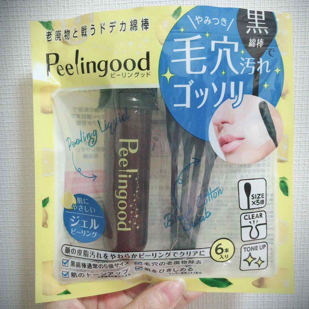 パケを捨ててしまったので正確な商品名がわかりません🙏💦申し訳ないです😵💦💦商品の特徴は黒くて大きな綿棒です!中身には茶色いボトルがあり、その中にピーリングジェルが入っているのでそこに綿棒を浸し、顔の気になる部分に広げてくるくるくるくるしていき...
